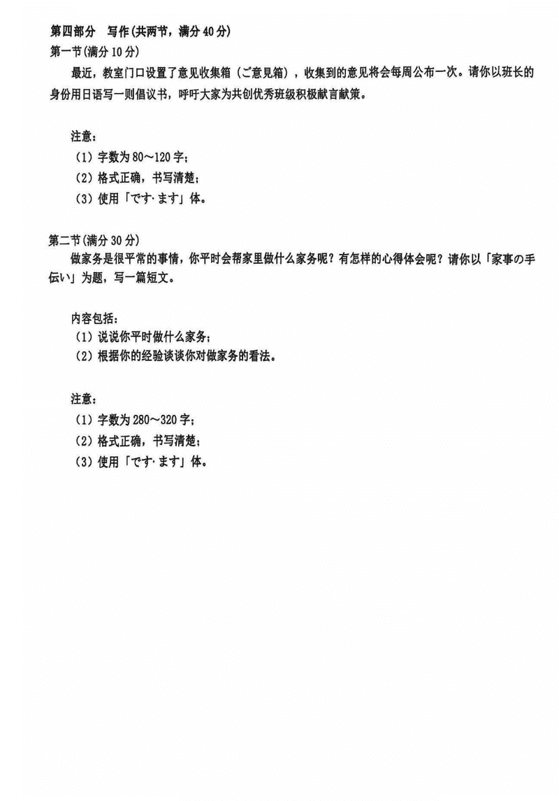 诸暨一模2025届高三上学期12月诊断日语试题及答案