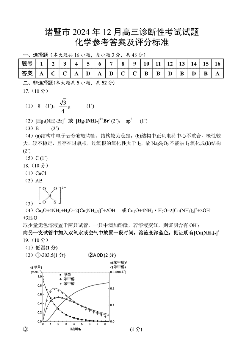 浙江诸暨一模2025届高三上学期12月诊断化学考试已于近日开考,为方便考生考后及时查看考试情况,查漏补缺、弥补不足,本文整理了试题答案解析相关信息!