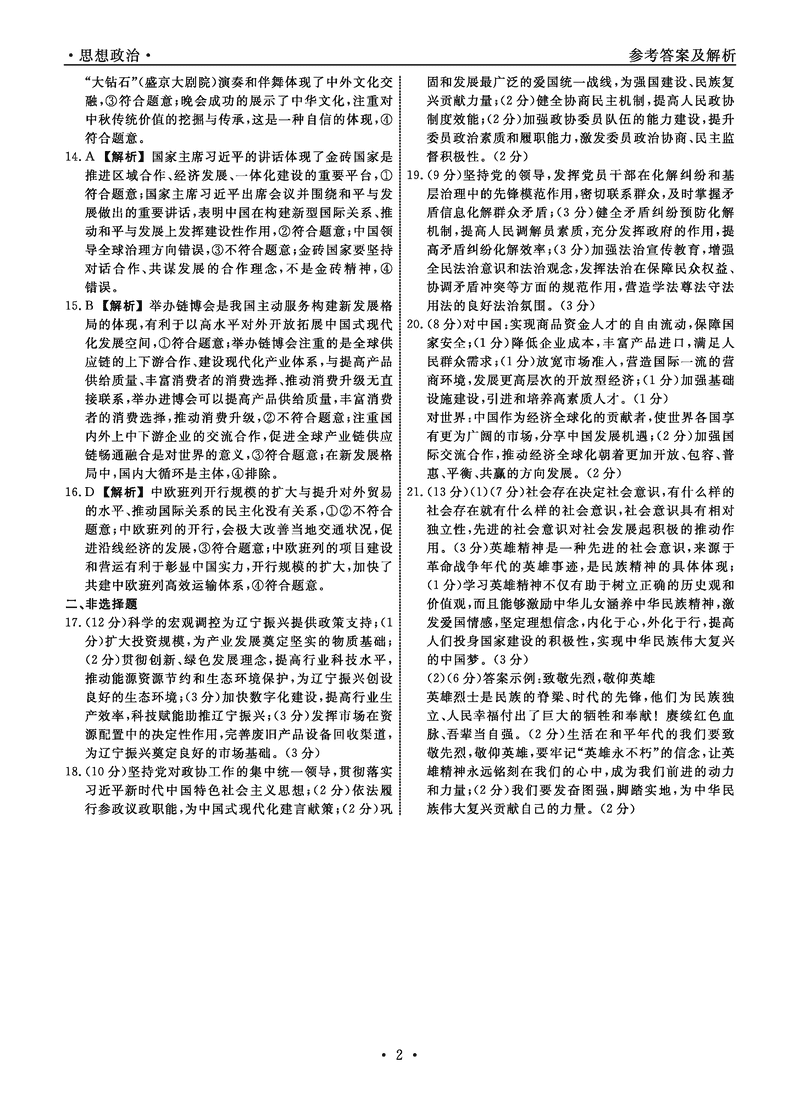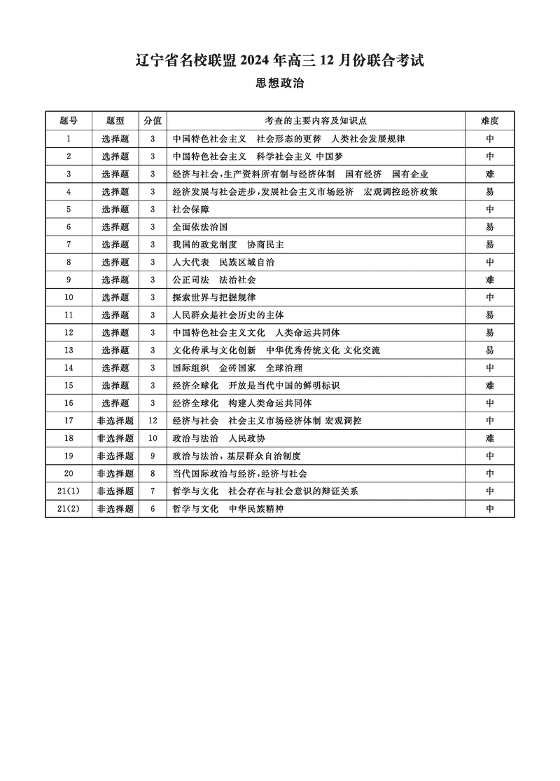 辽宁名校联盟2024年高三12月联考政治试题及答案 时间:2024-12-10 22:25 辽宁 文综试题 辽宁名校联盟2024年高三12月联考政治考试已于近日开考,为方便考生考后及时查看考试情况,查漏补缺、弥补不足,本文整理了试题答案解析相关信息! 汇总:辽宁名校联盟2024年高三12月联考试题及答案汇总 政治试题及答案解析