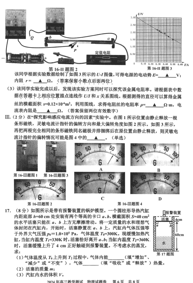 浙江嘉兴一模2024年高三12月教学测试物理考试已于近日开考,为方便考生考后及时查看考试情况,查漏补缺、弥补不足,本文整理了试题答案解析相关信息!