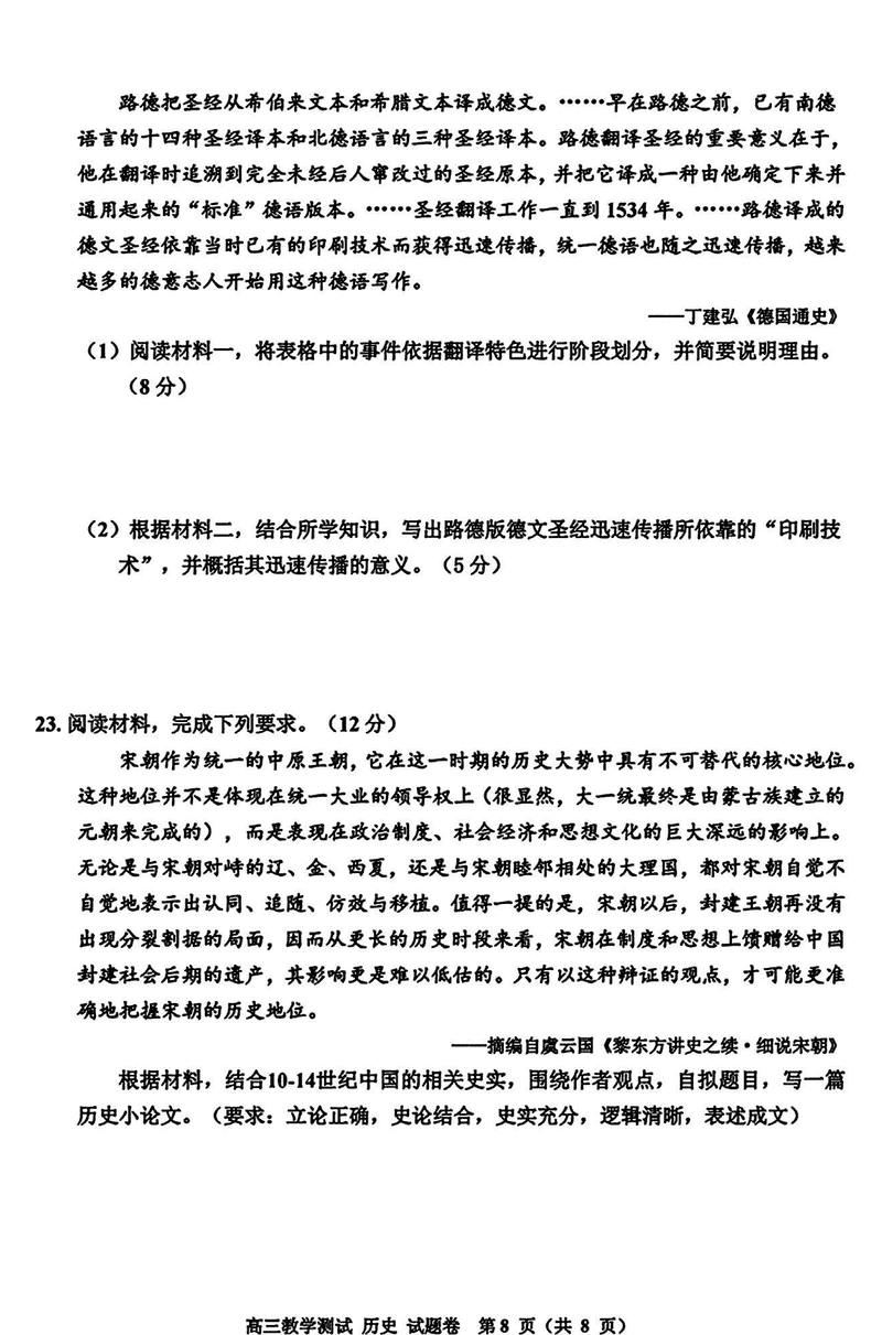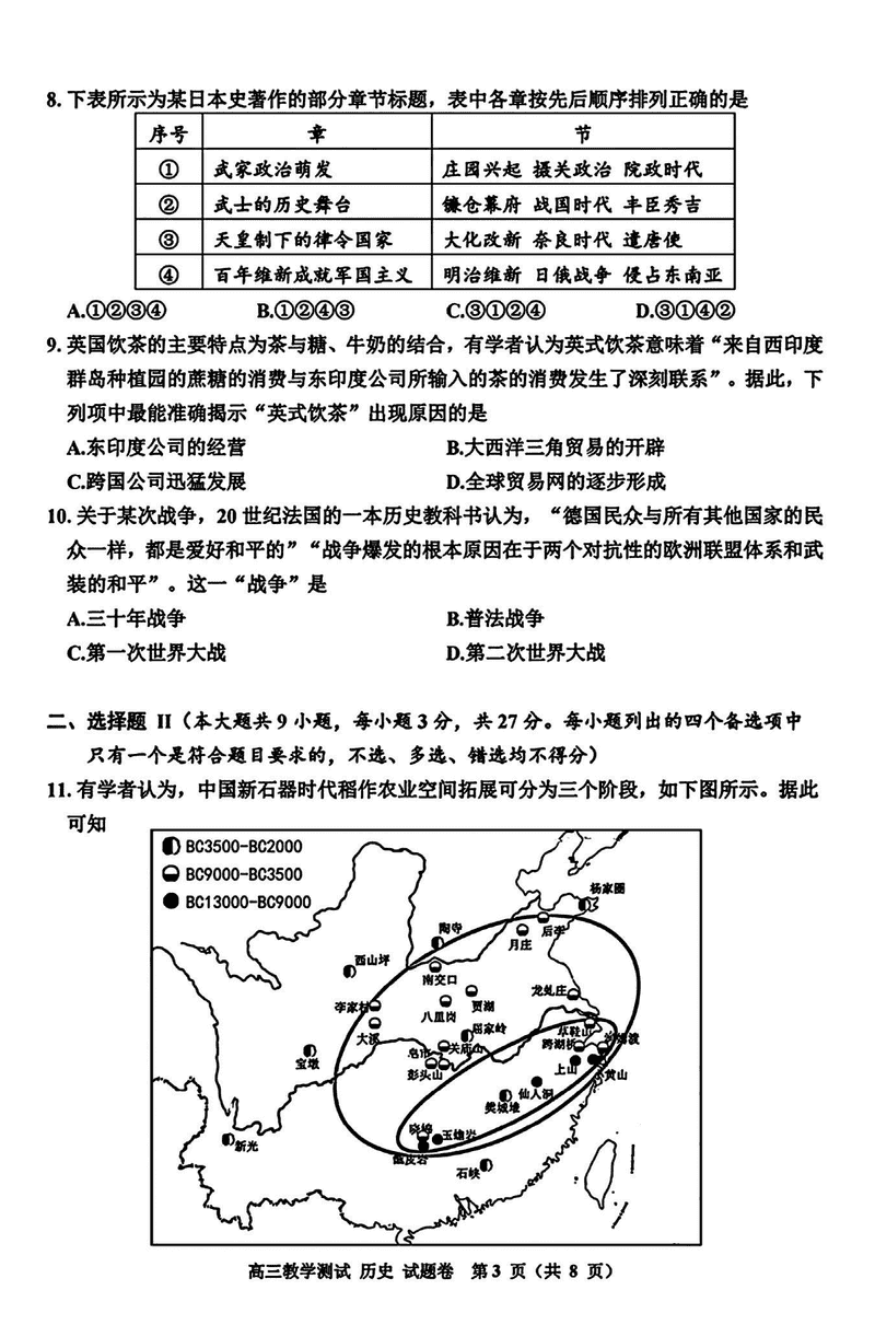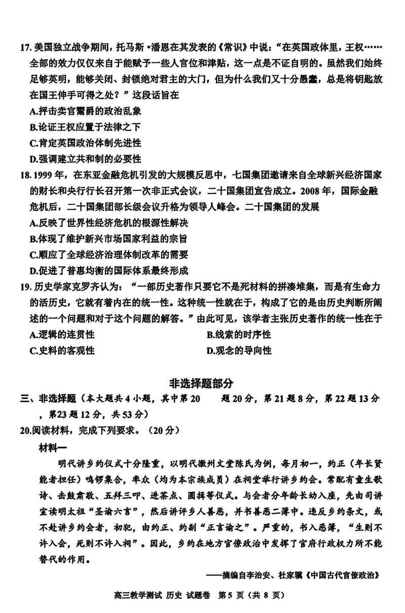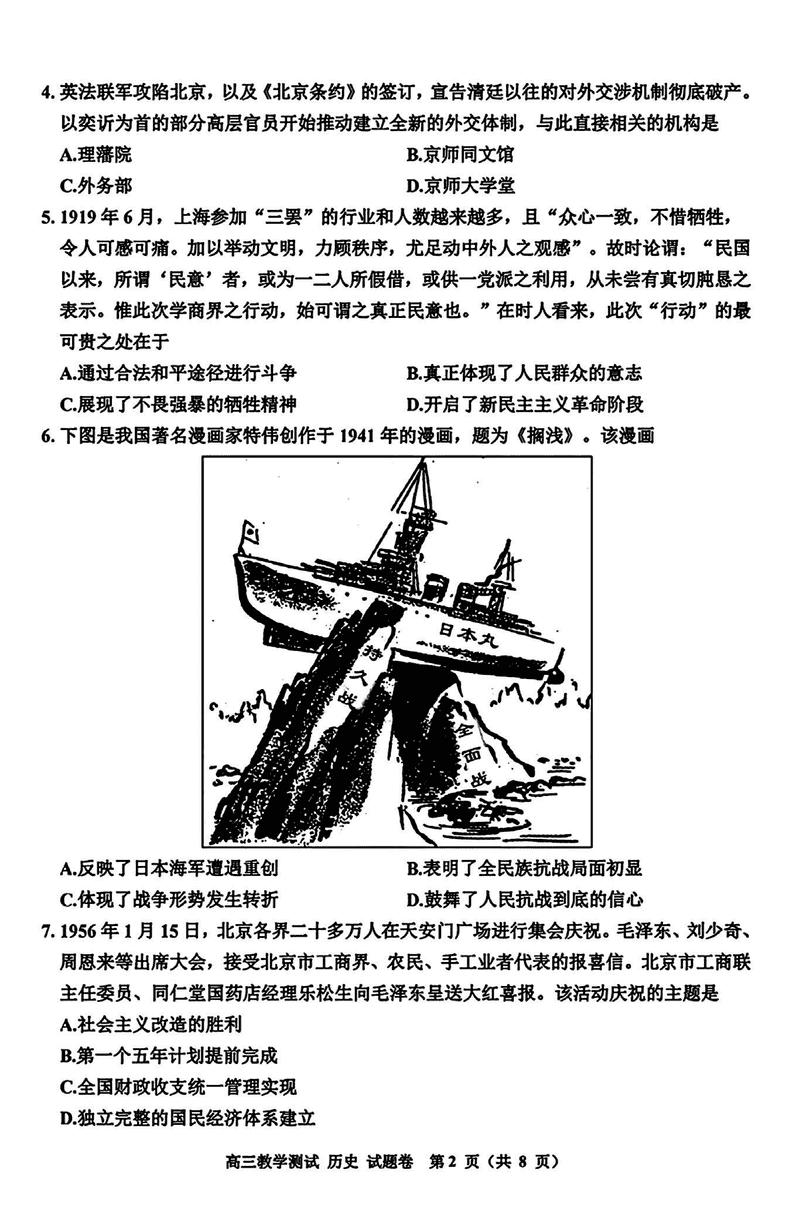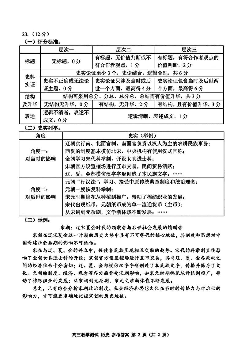 浙江嘉兴一模2024年高三12月教学测试历史试题及答案