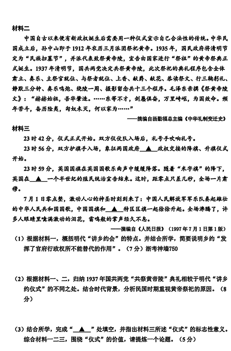 浙江 文综试题