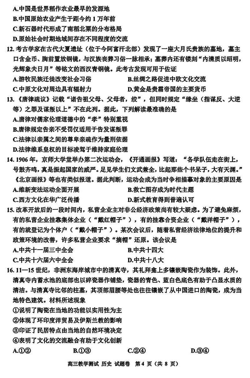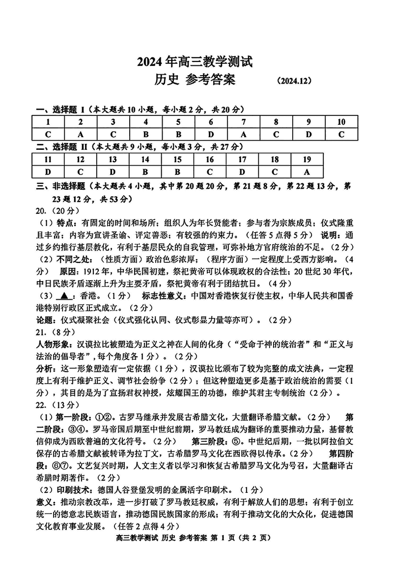 浙江嘉兴一模2024年高三12月教学测试历史考试已于近日开考,为方便考生考后及时查看考试情况,查漏补缺、弥补不足,本文整理了试题答案解析相关信息!