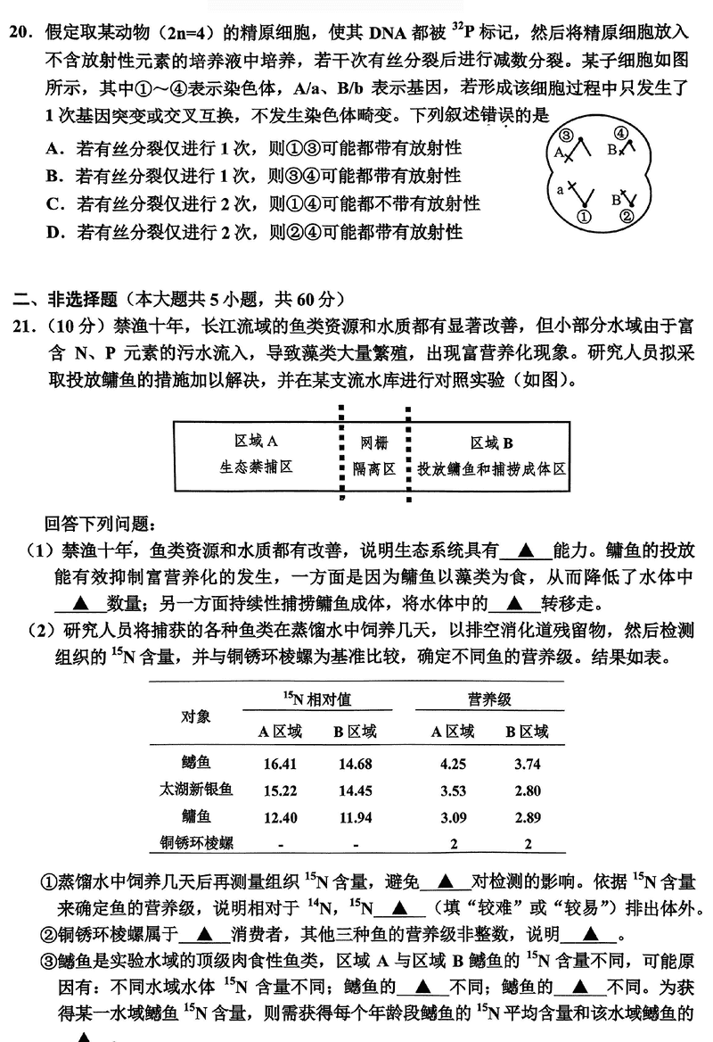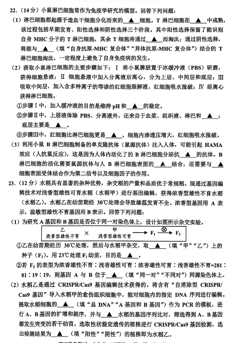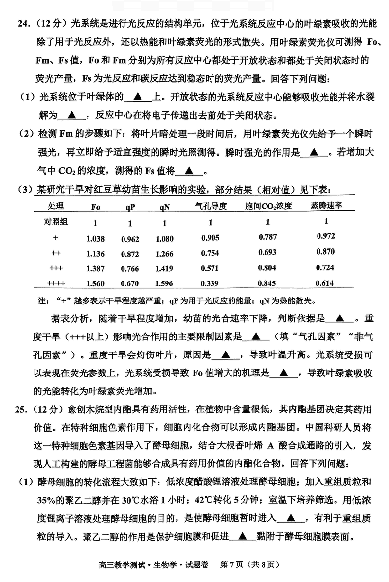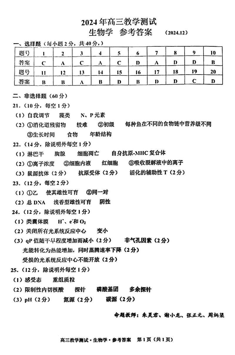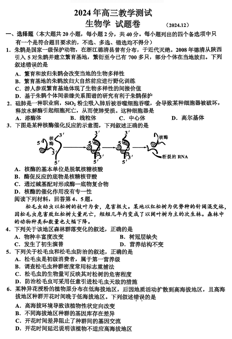 浙江嘉兴一模2024年高三12月教学测试生物考试已于近日开考,为方便考生考后及时查看考试情况,查漏补缺、弥补不足,本文整理了试题答案解析相关信息!