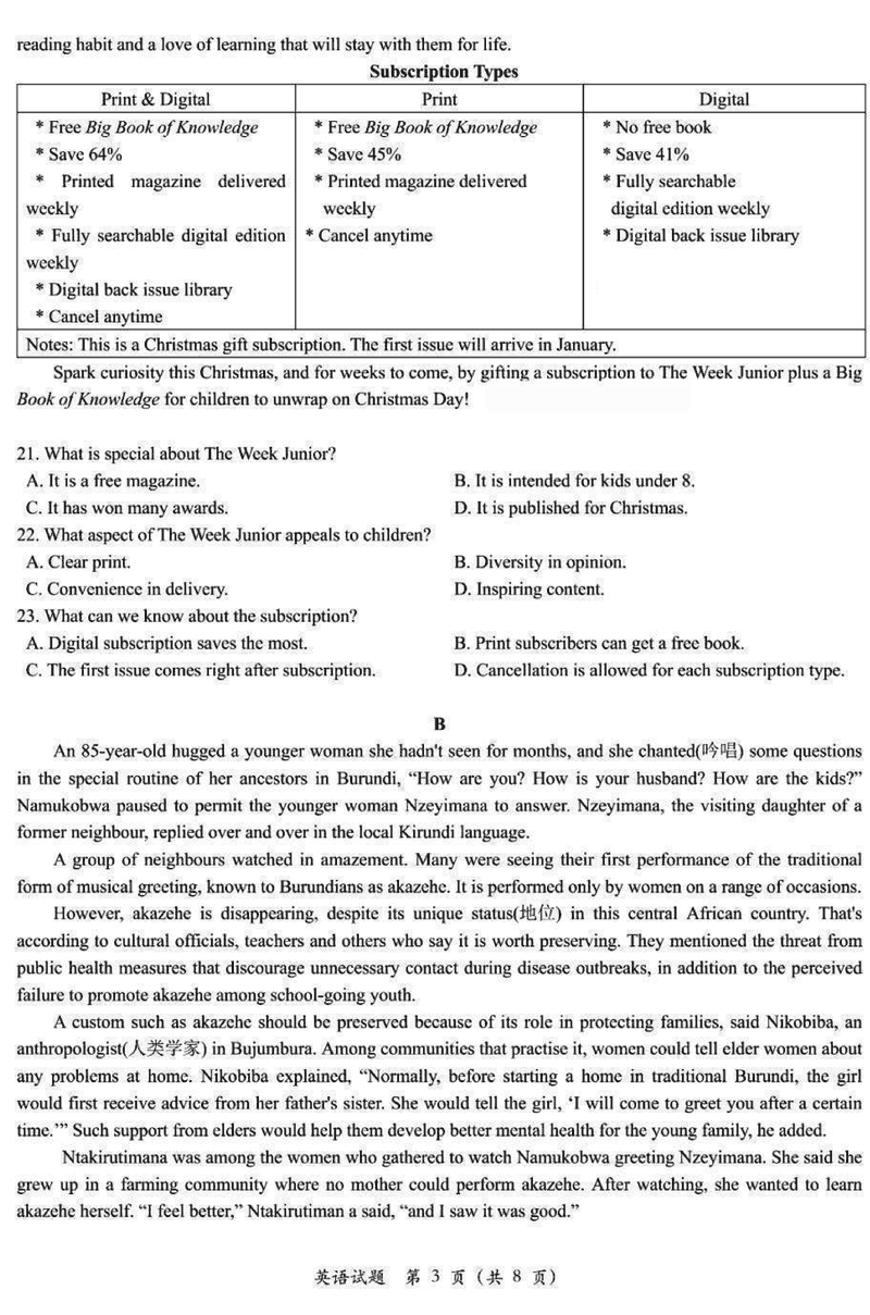 浙江 英语试题