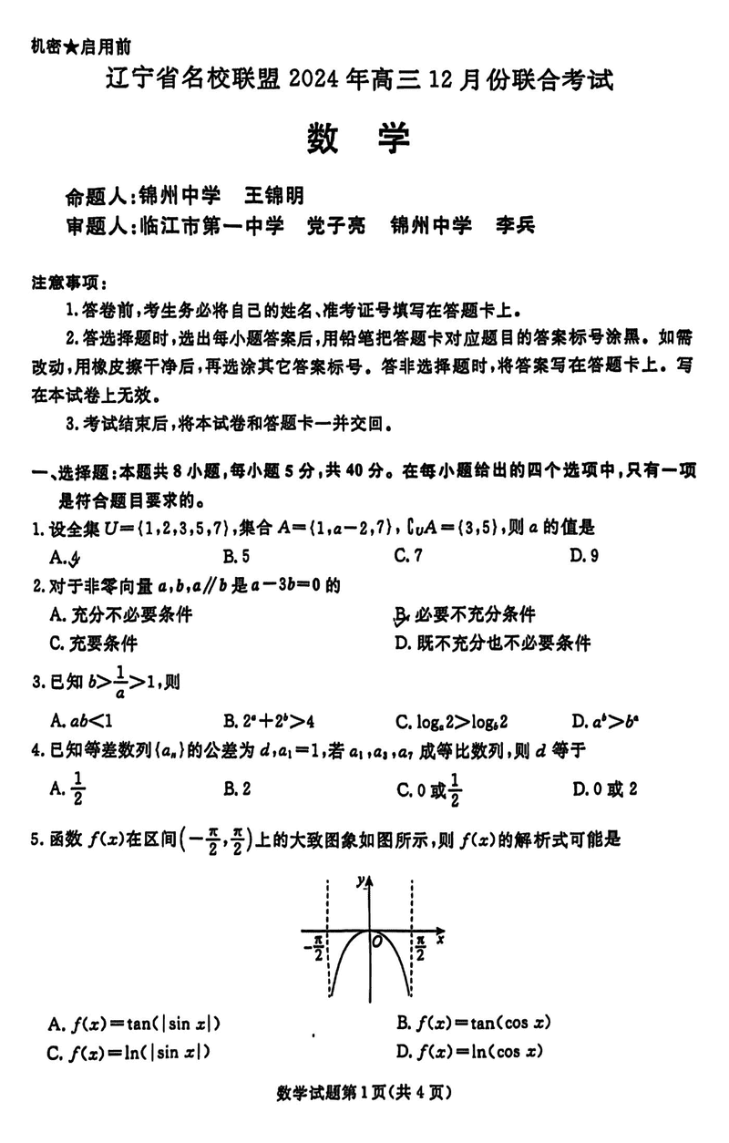 辽宁名校联盟2024年高三12月联考数学试题及答案 时间:2024-12-11 21:44 辽宁 数学试题 辽宁名校联盟2024年高三12月联考数学考试已于近日开考,为方便考生考后及时查看考试情况,查漏补缺、弥补不足,本文整理了试题答案解析相关信息! 汇总:辽宁名校联盟2024年高三12月联考试题及答案汇总 数学试题及答案解析
