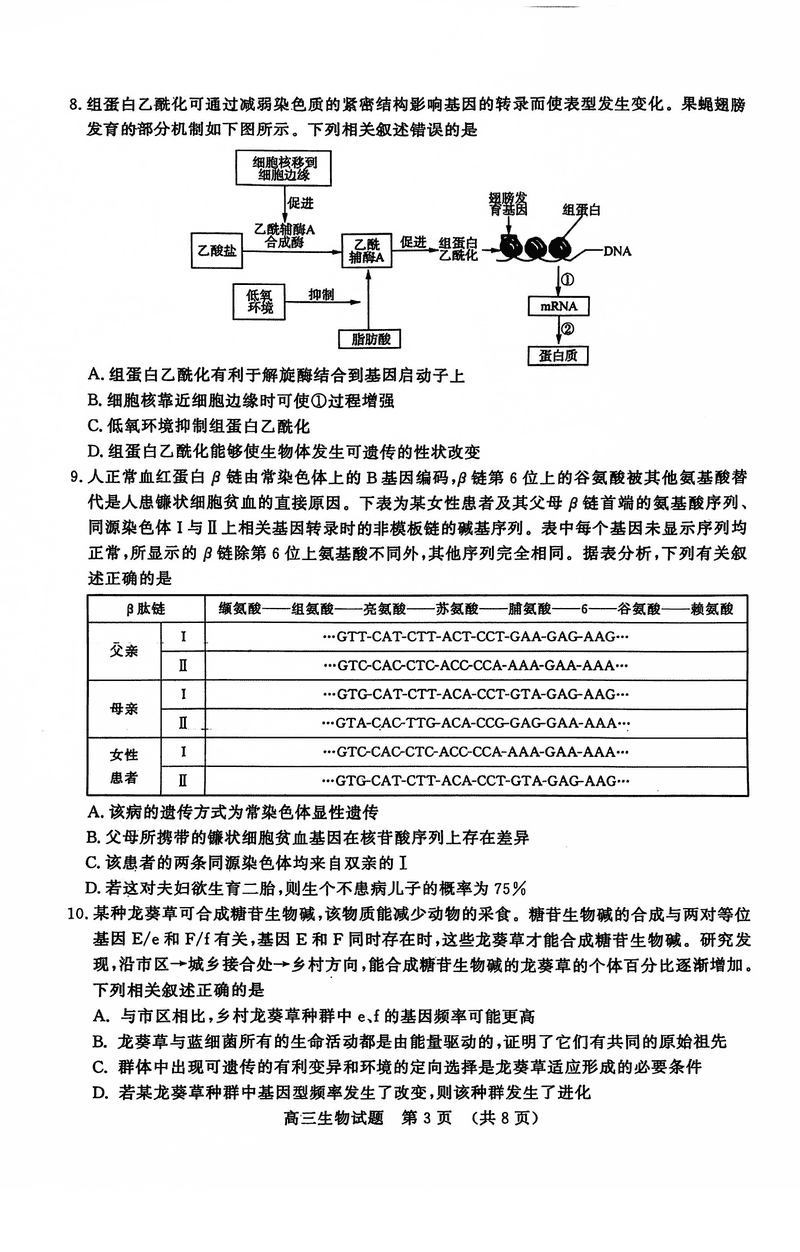 山东名校考试联盟2024年12月高三阶段测生物试题及答案