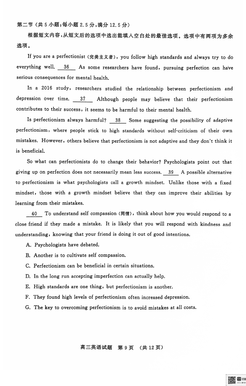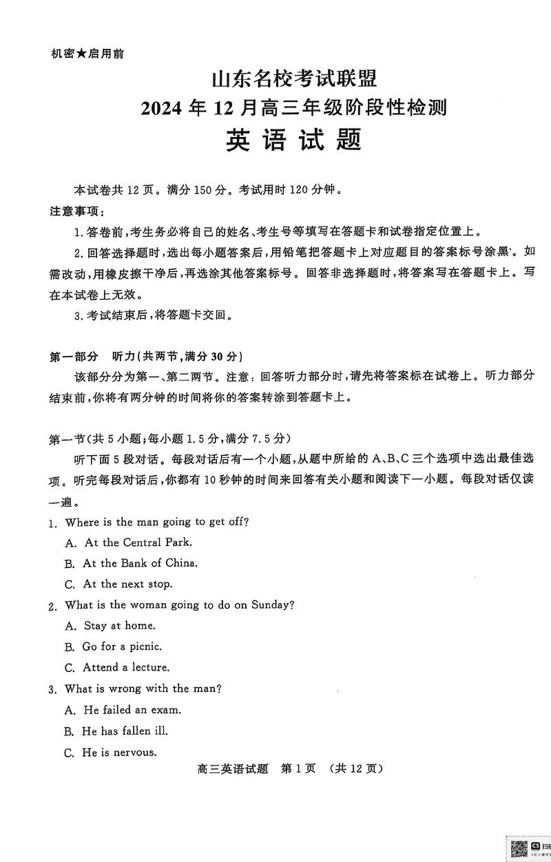 山东名校考试联盟2024年12月高三阶段测英语考试已于近日开考,为方便考生考后及时查看考试情况,查漏补缺、弥补不足,本文整理了试题答案解析相关信息!