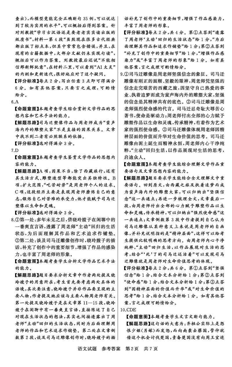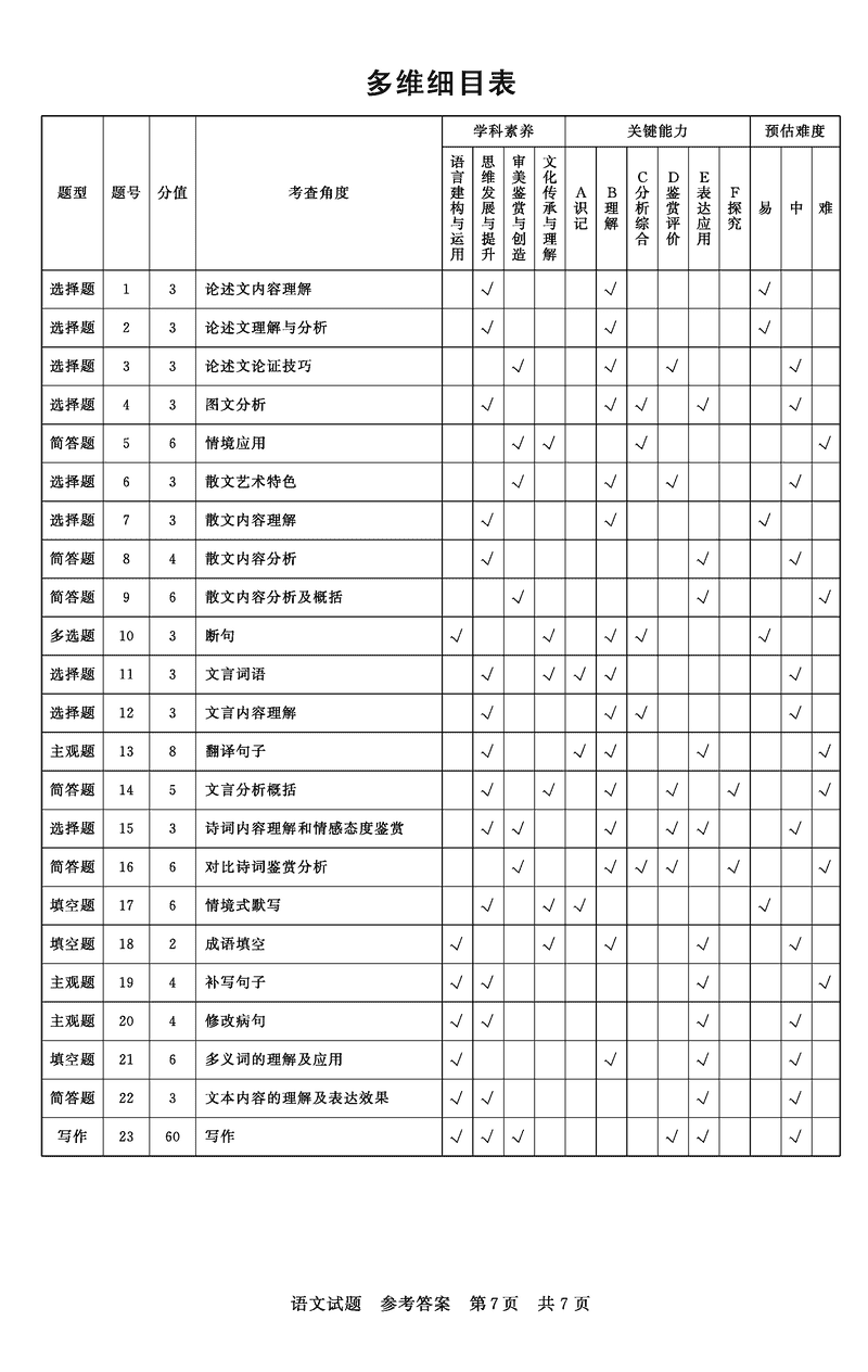 语文试题及答案解析