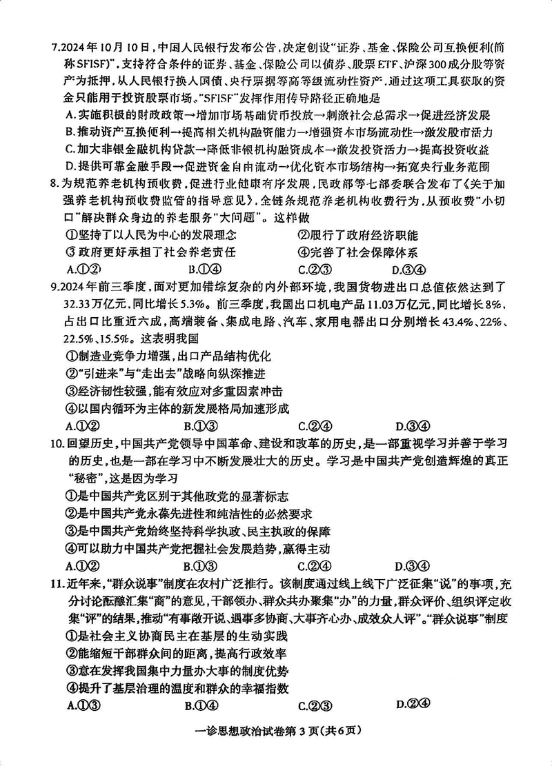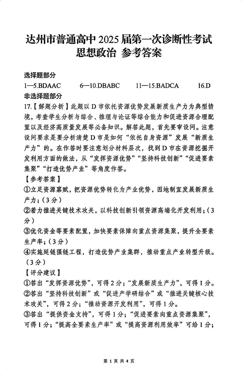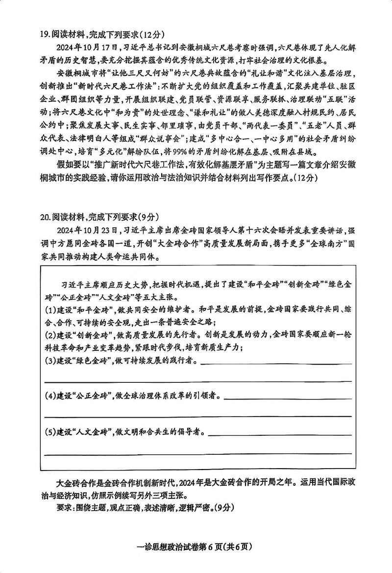 达州一诊2025届高三第一次诊断政治试题及答案 时间:2024-12-13 11:06 四川 文综试题 达州一诊2025届高三第一次诊断政治考试已于近日开考,为方便考生考后及时查看考试情况,查漏补缺、弥补不足,本文整理了试题答案解析相关信息! 汇总:达州一诊2025届高三第一次诊断性测试试题及答案汇总 政治试题及答案解析
