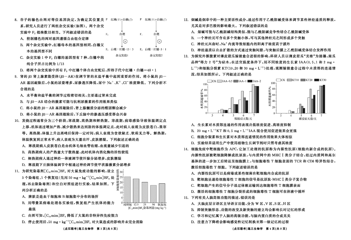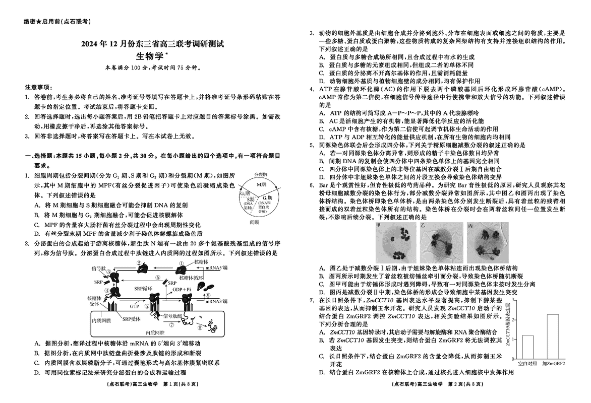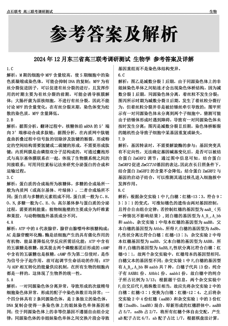东北三省2024年12月高三点石联考生物试题及答案 时间:2024-12-13 11:18 黑龙江 理综试题 东北三省2024年12月高三点石联考生物考试已于近日开考,为方便考生考后及时查看考试情况,查漏补缺、弥补不足,本文整理了试题答案解析相关信息! 汇总:东北三省2024年12月高三点石联考调研测试试题及答案汇总 生物试题及答案解析