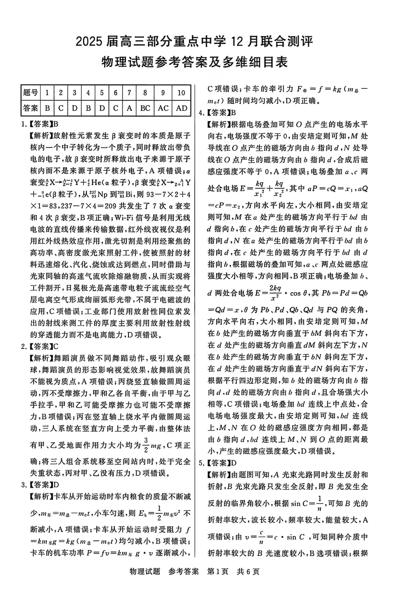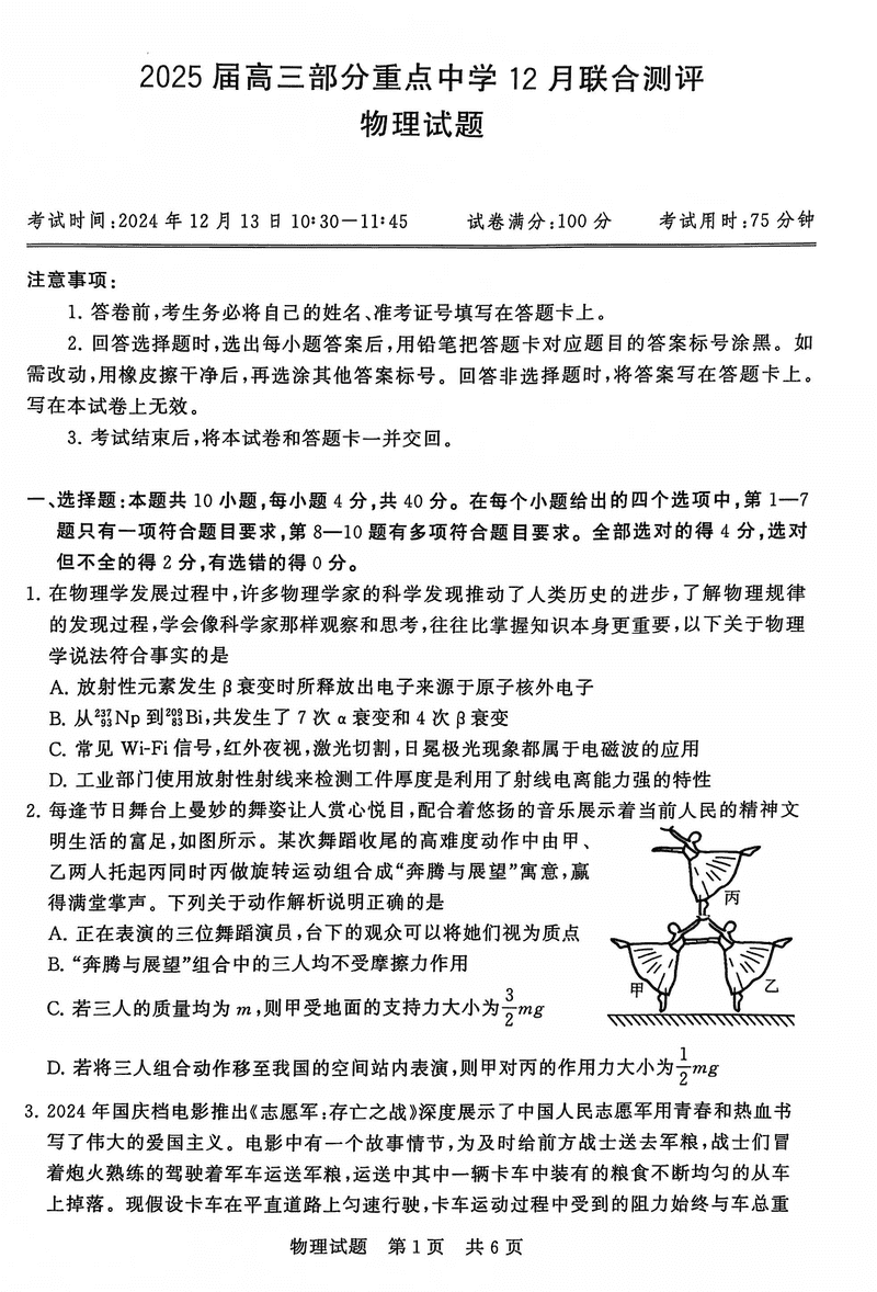 2025届全国T8八省八校高三12月联合测评物理试题及答案