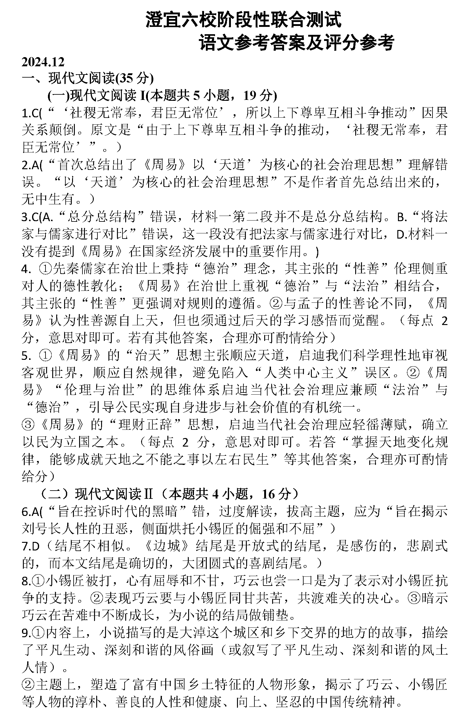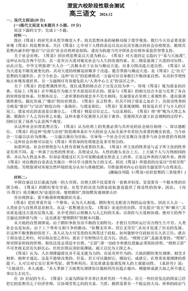 无锡澄宜六校2025届高三上学期12月联考语文考试已于近日开考,为方便考生考后及时查看考试情况,查漏补缺、弥补不足,本文整理了试题答案解析相关信息!
