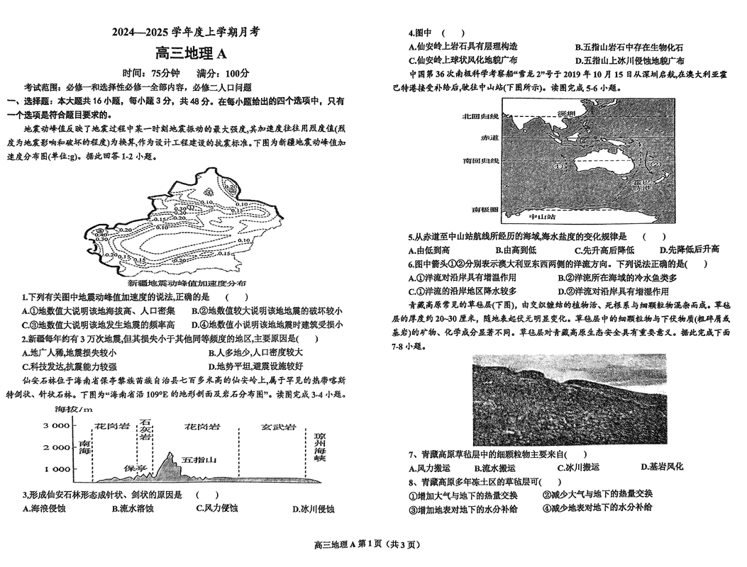 鞍山市普通高中2025届高三上第三次月考地理考试已于近日开考,为方便考生考后及时查看考试情况,查漏补缺、弥补不足,本文整理了试题答案解析相关信息!