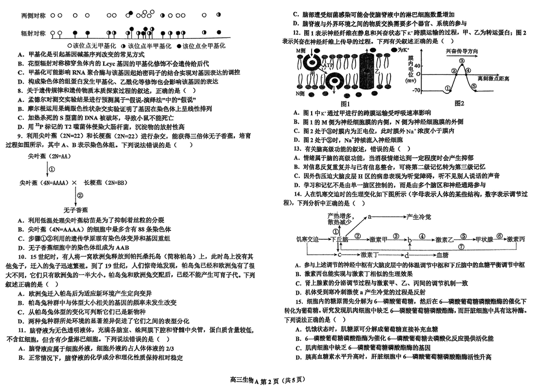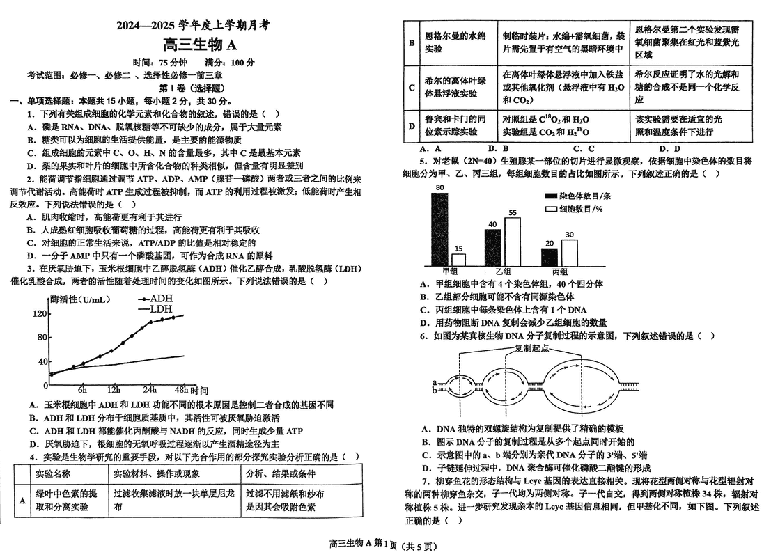 鞍山市普通高中2025届高三上第三次月考生物试题及答案