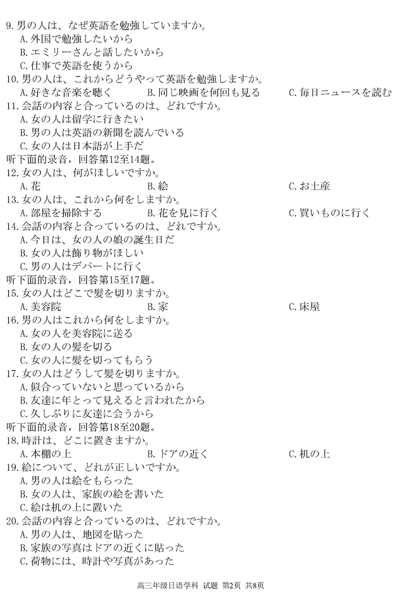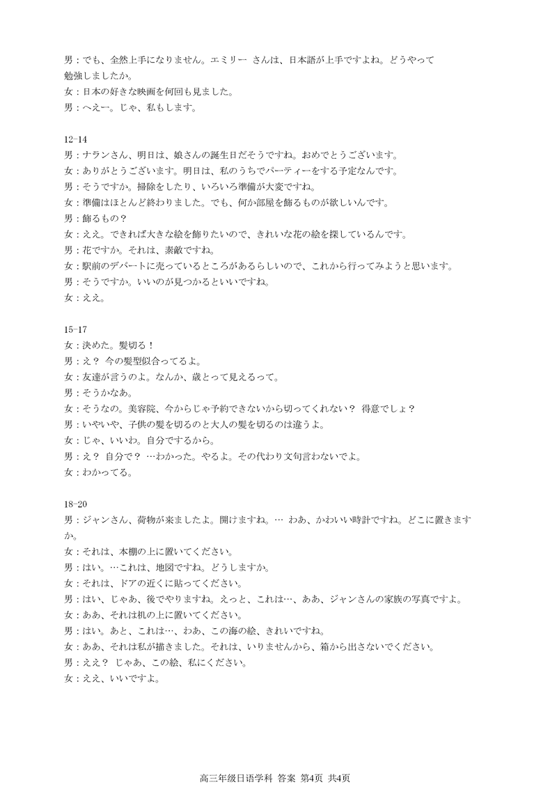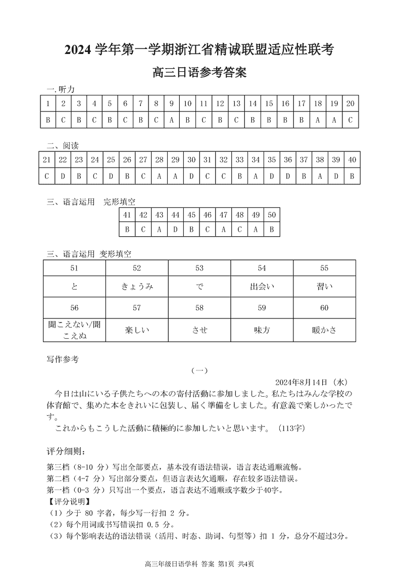 浙江省精诚联盟2024学年12月高三上学期适应性联考日语考试已于近日开考,为方便考生考后及时查看考试情况,查漏补缺、弥补不足,本文整理了试题答案解析相关信息!