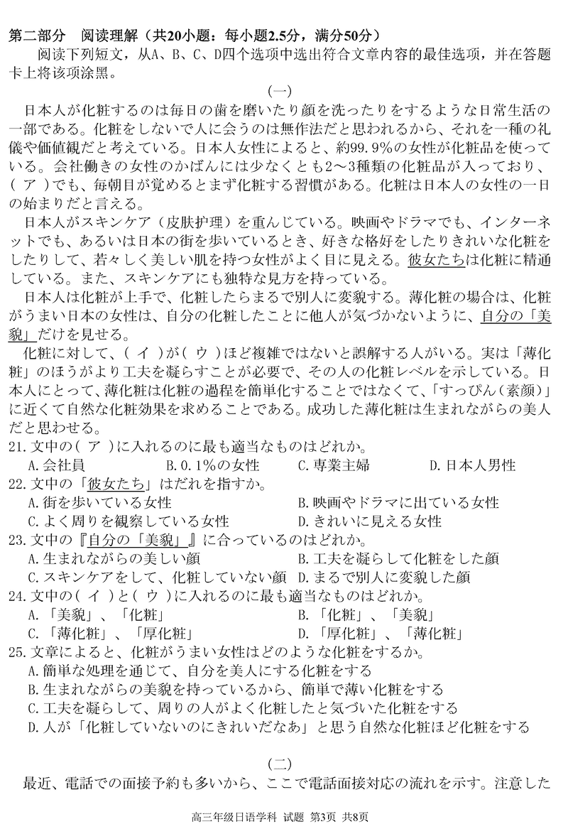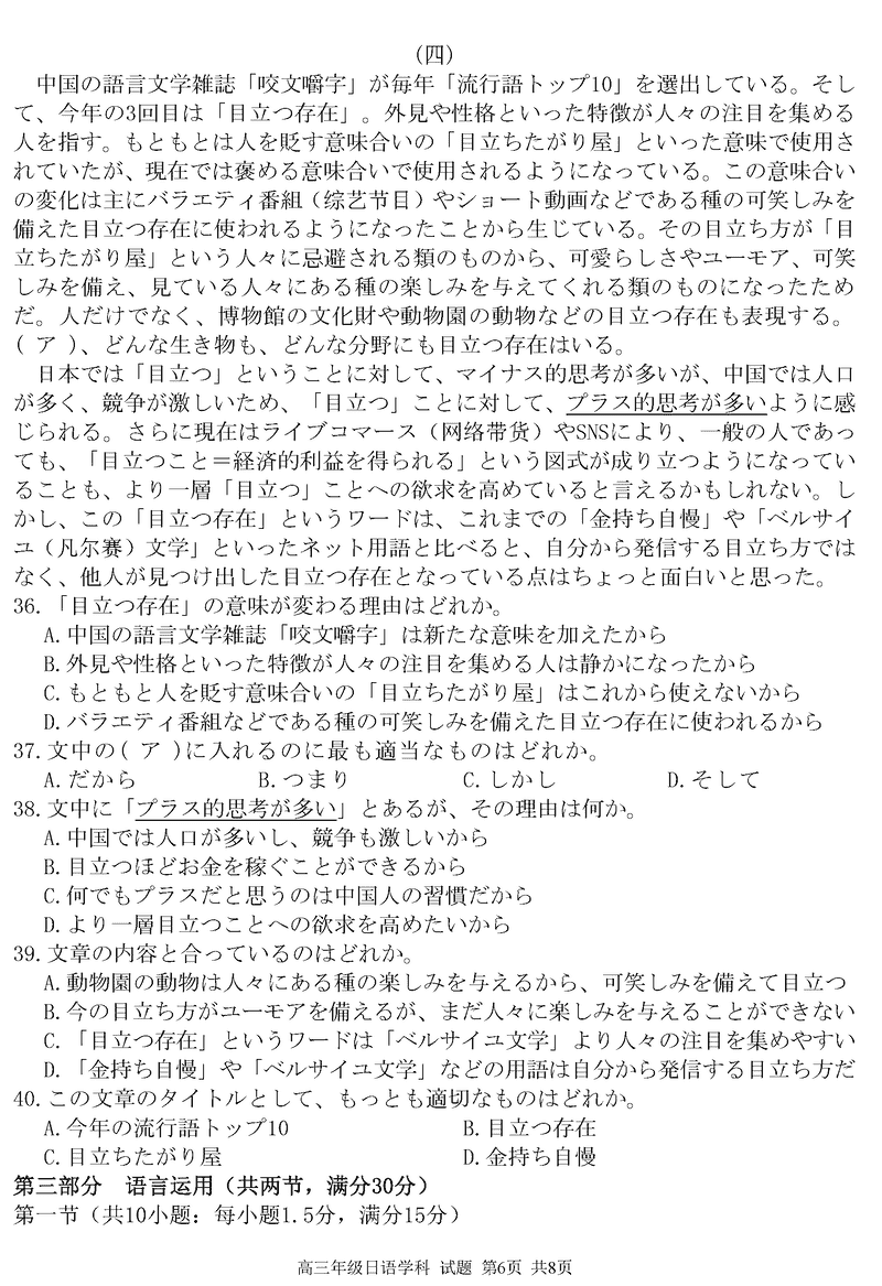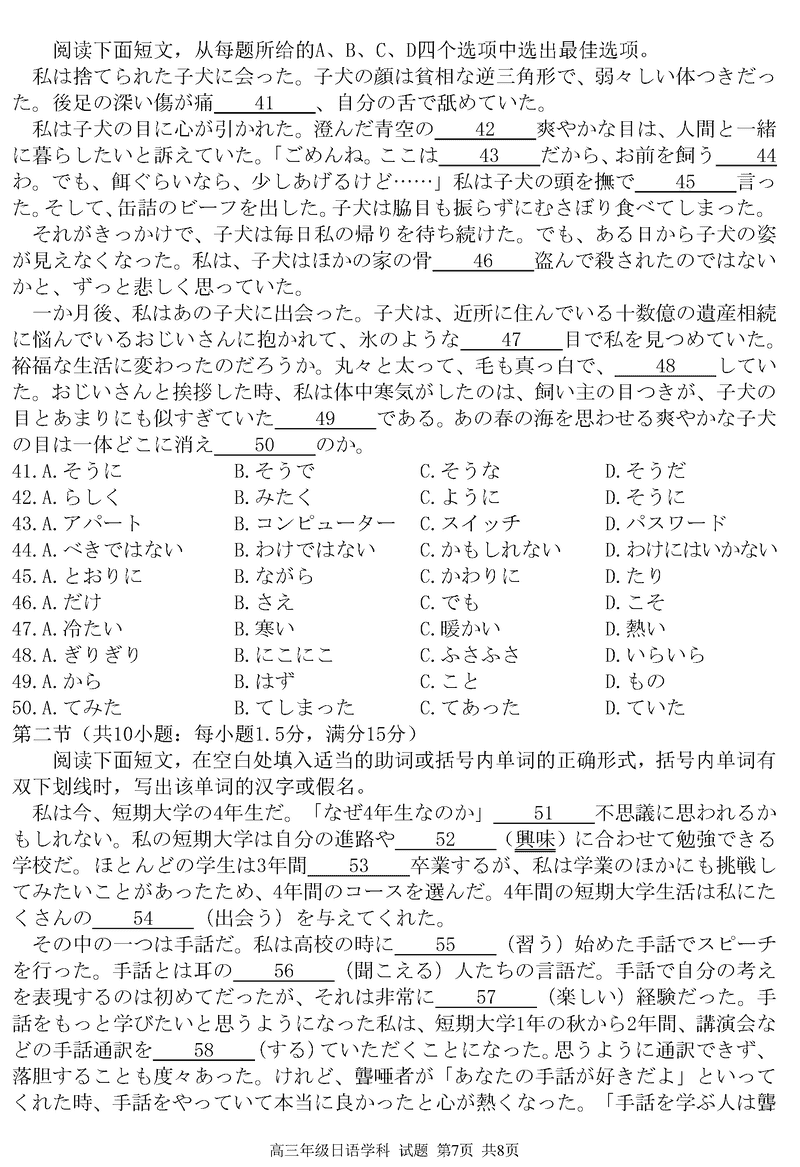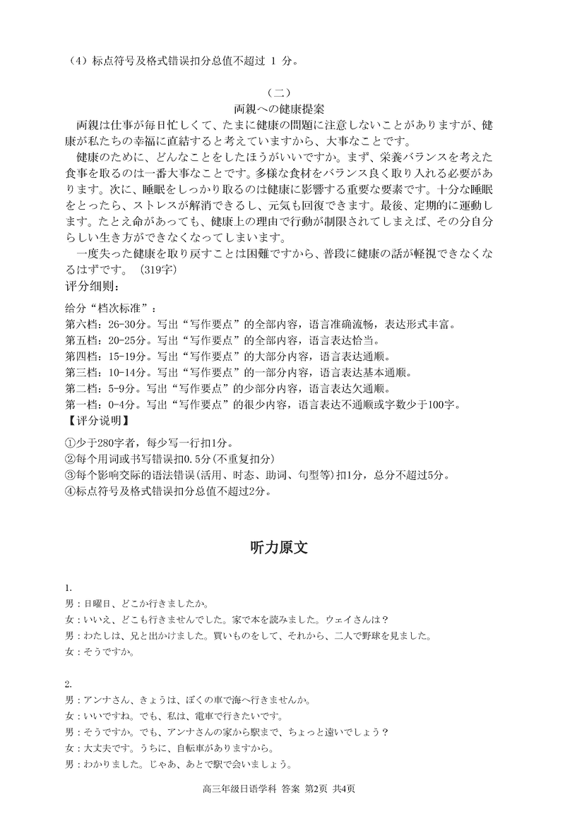 浙江精诚联盟2024学年12月高三上联考日语试题及答案
