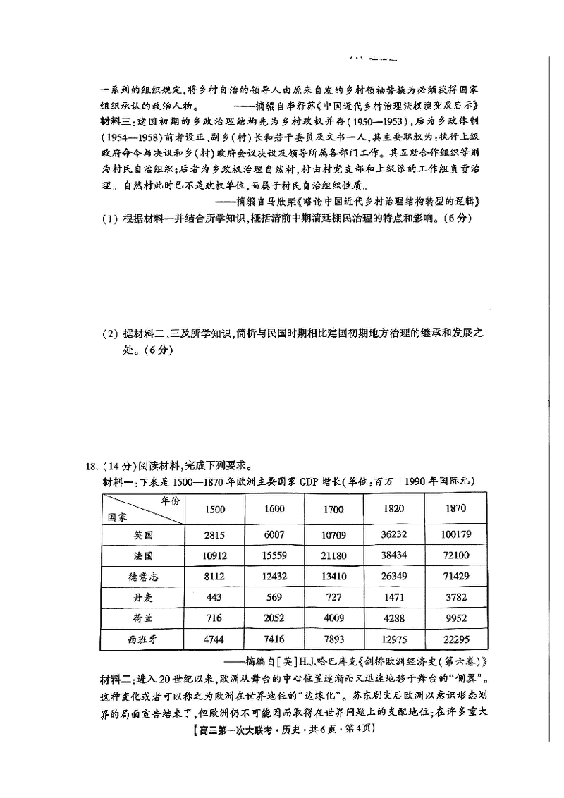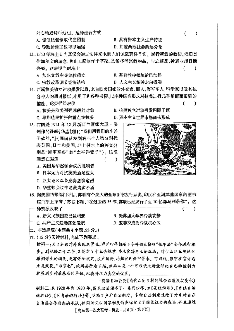 邯郸部分学校2025届高三第一次大联考模拟预测历史试题及答案