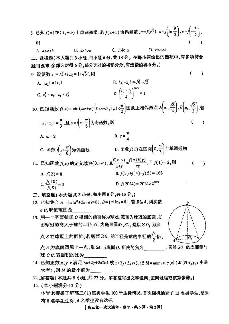 邯郸部分学校2025届高三第一次大联考模拟预测数学试题及答案