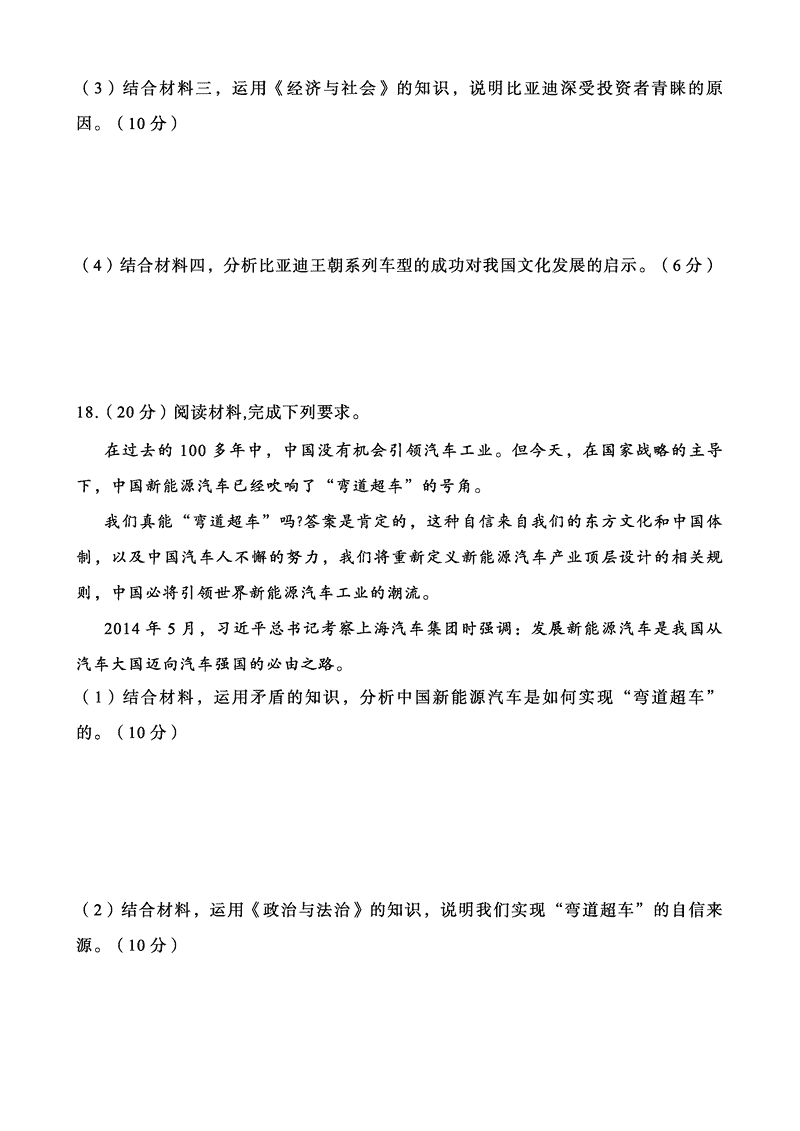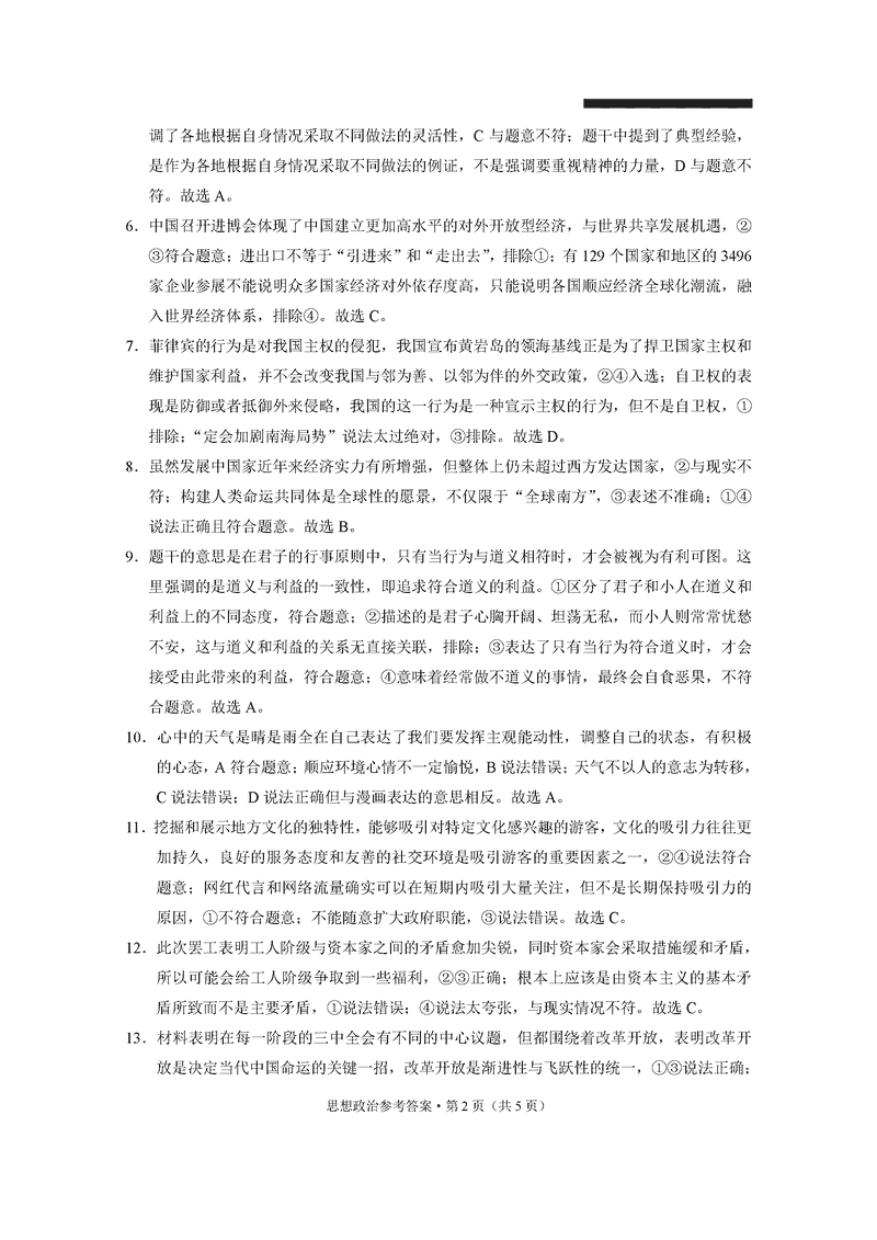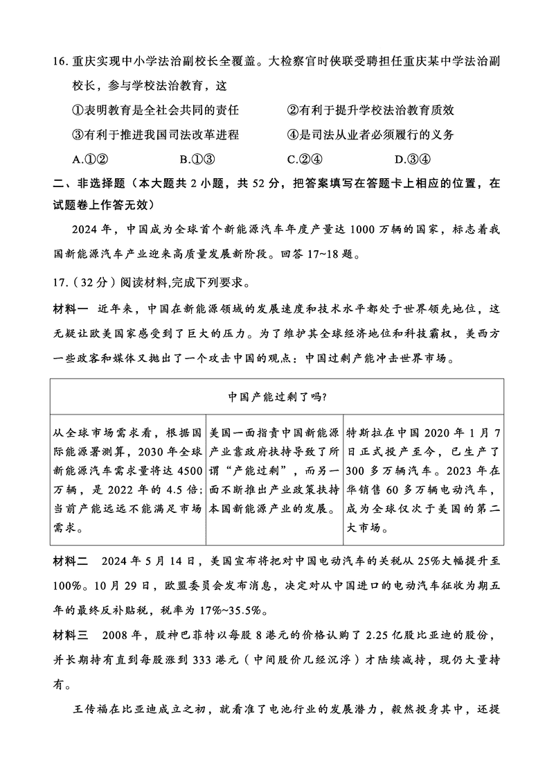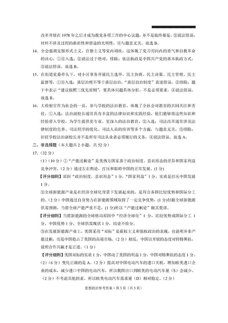 重庆巴蜀中学2025届高三12月适应性月考(四)政治试题及答案