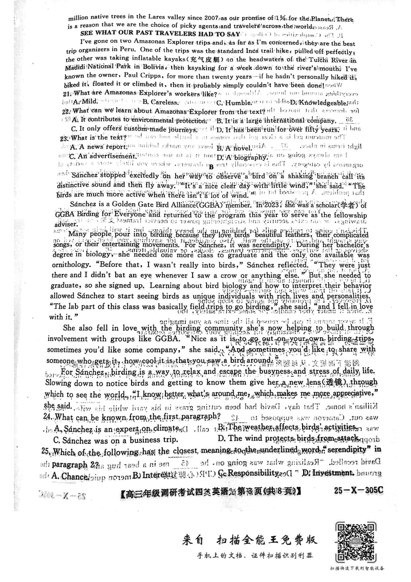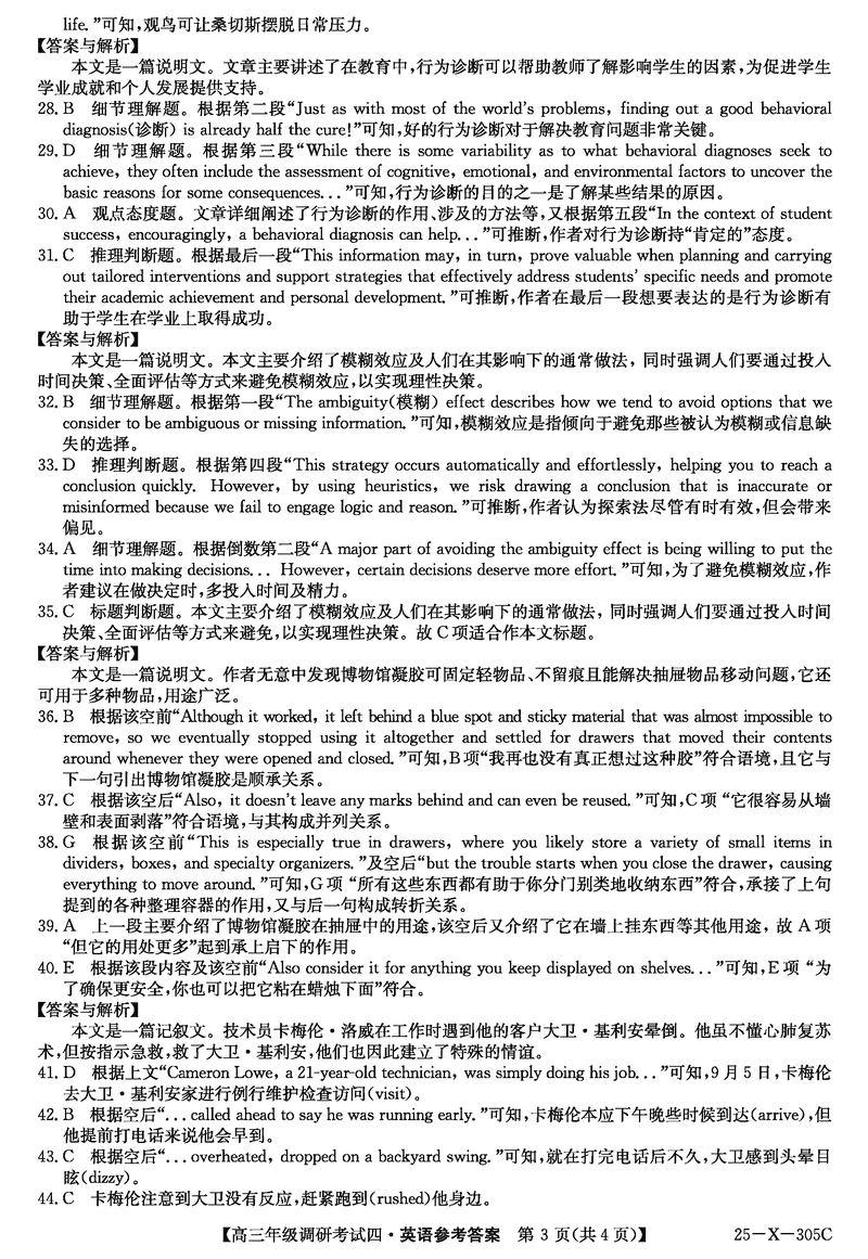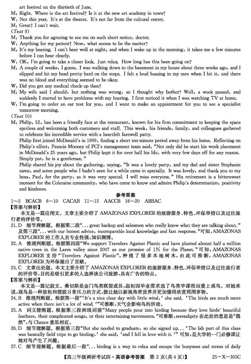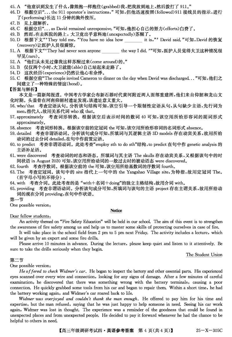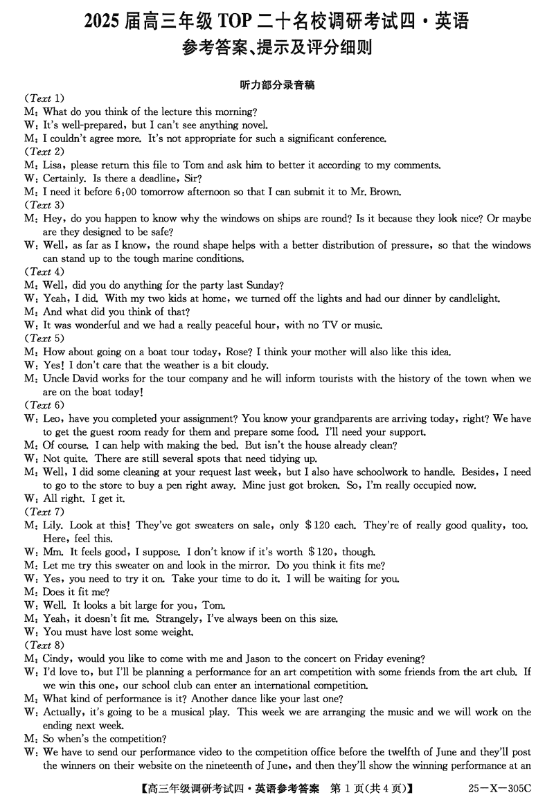 河南TOP20名校2025届高三上调研四英语试题及答案