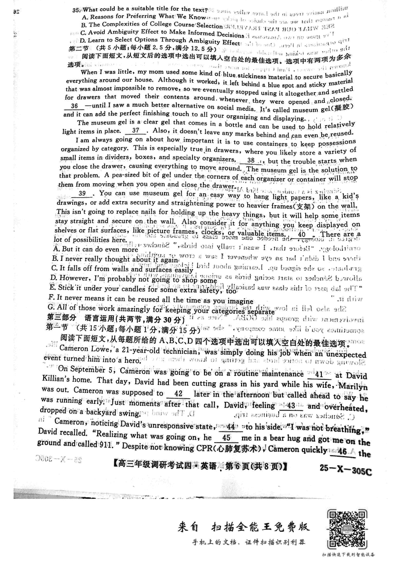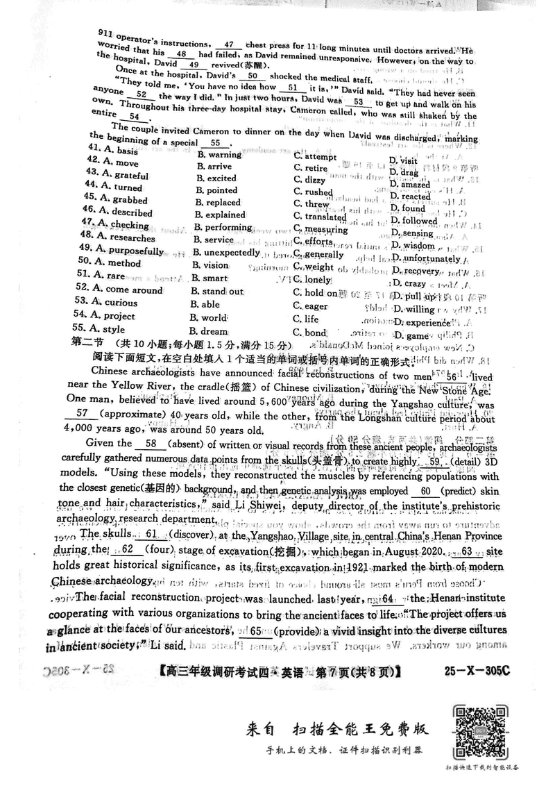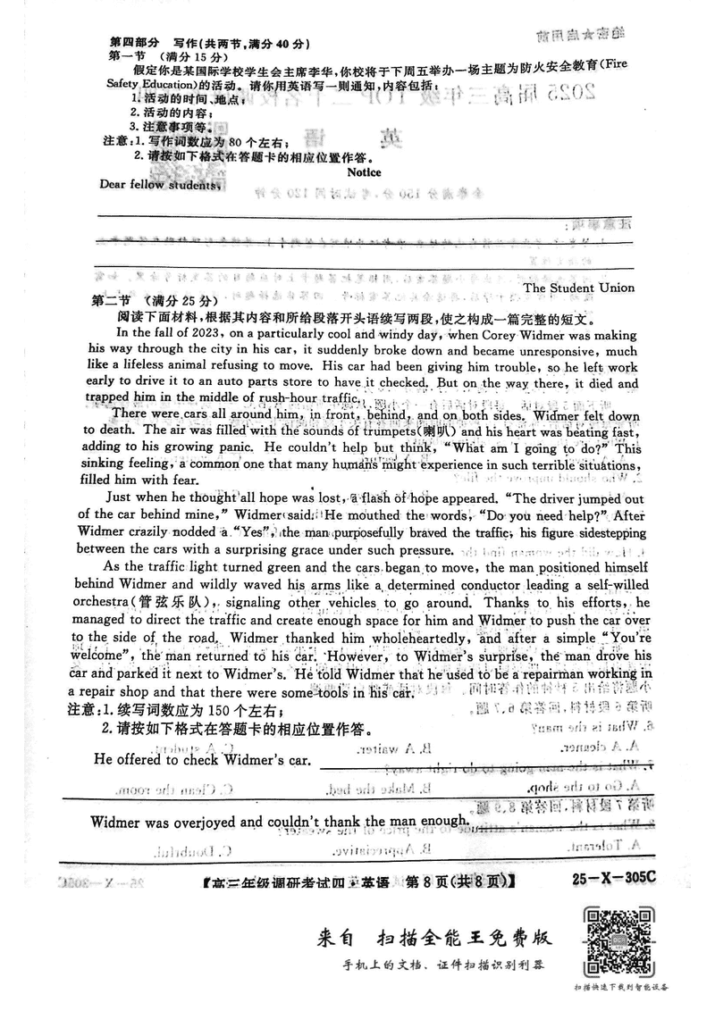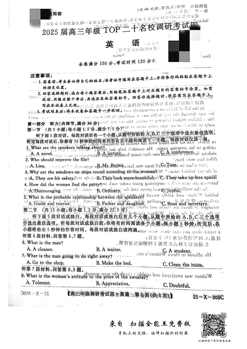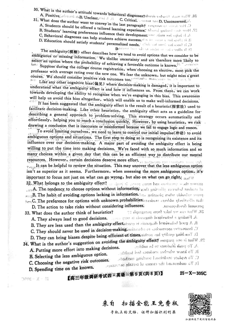 河南TOP20名校2025届高三上调研四英语试题及答案