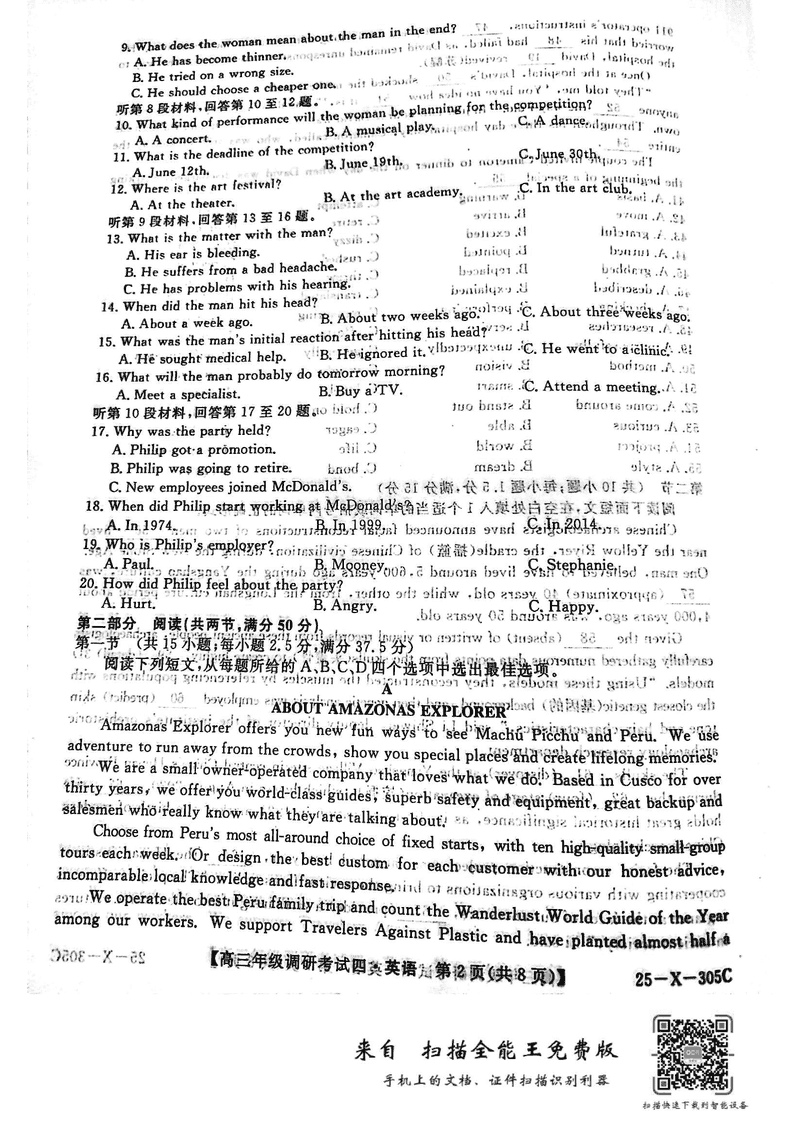 河南TOP20名校2025届高三上调研四英语考试已于近日开考,为方便考生考后及时查看考试情况,查漏补缺、弥补不足,本文整理了试题答案解析相关信息!