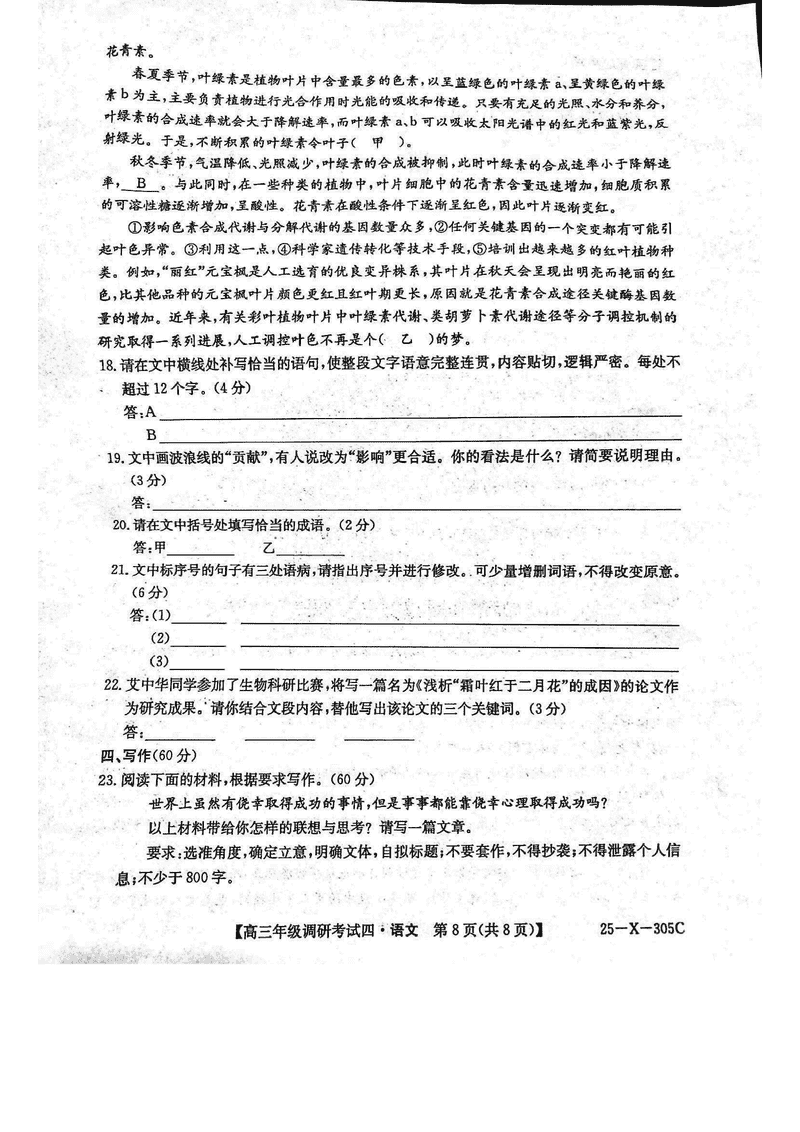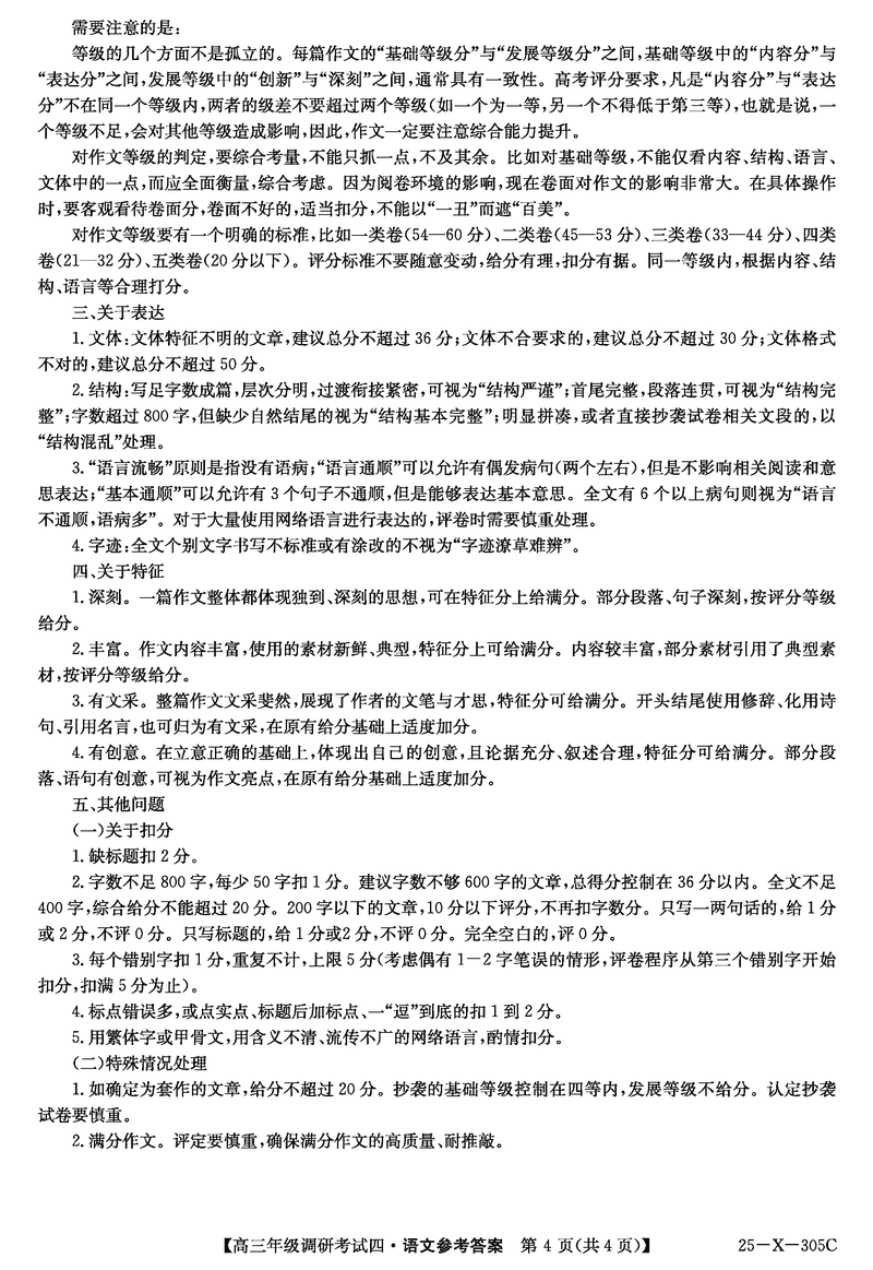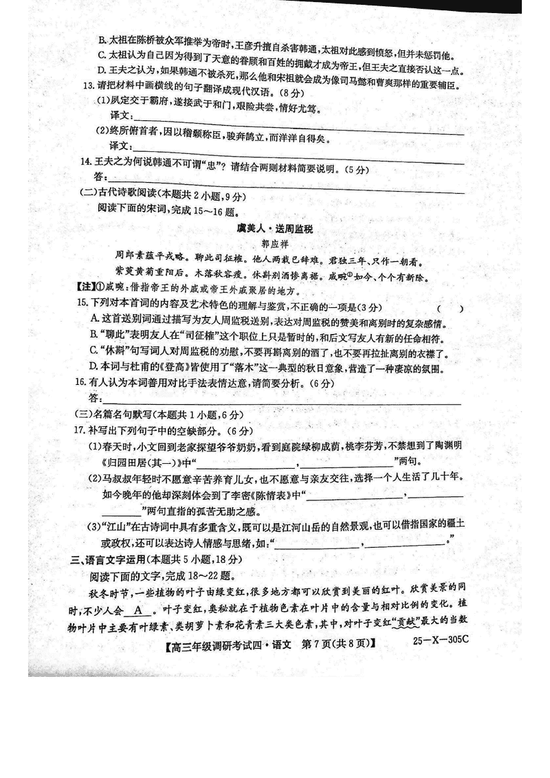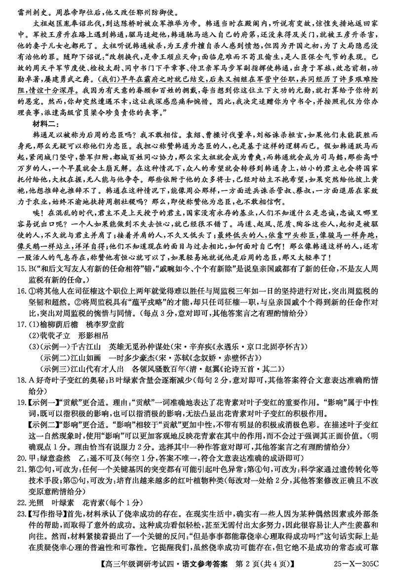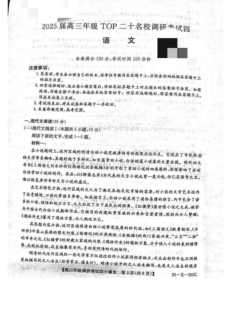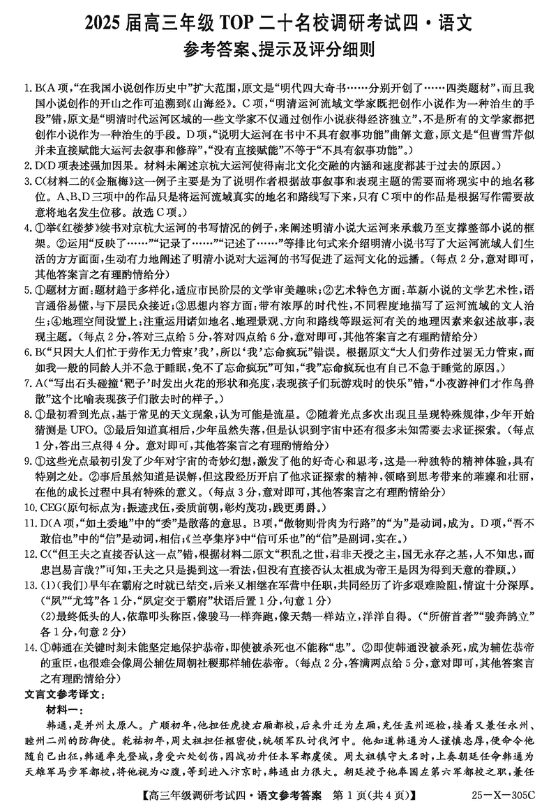 河南TOP20名校2025届高三上调研四语文试题及答案