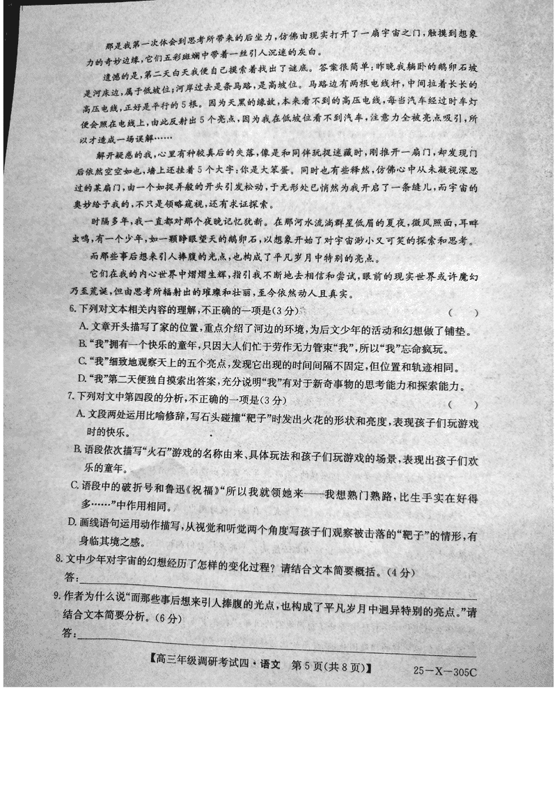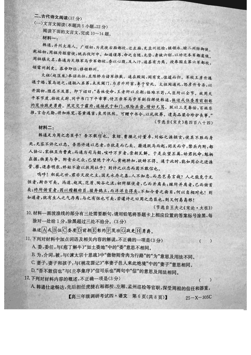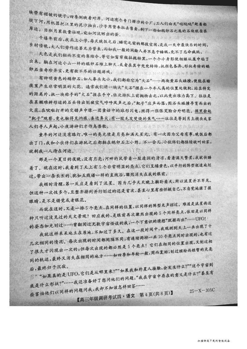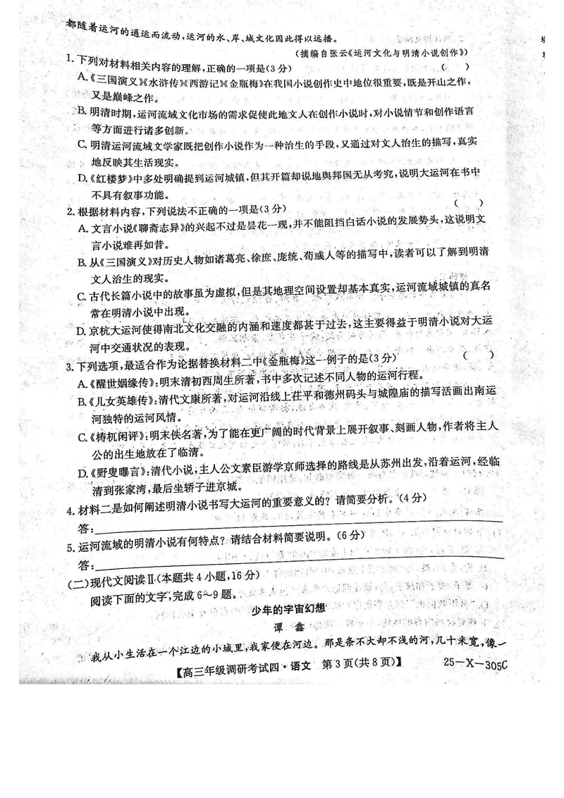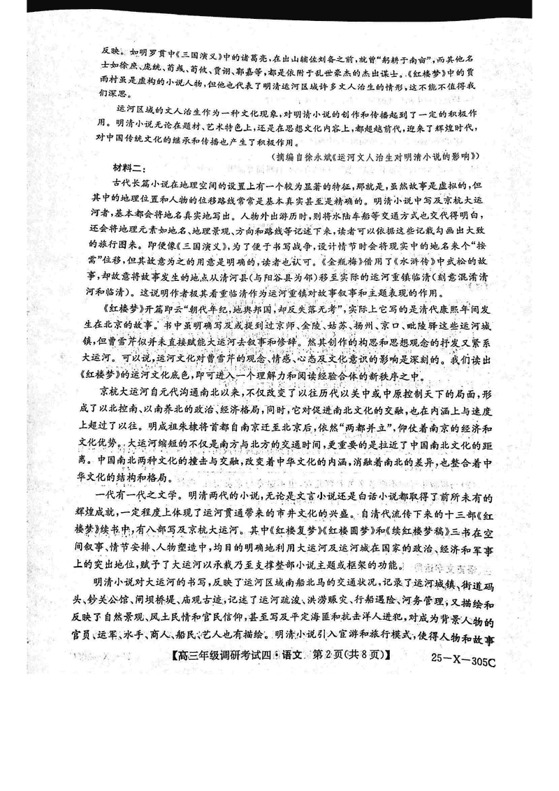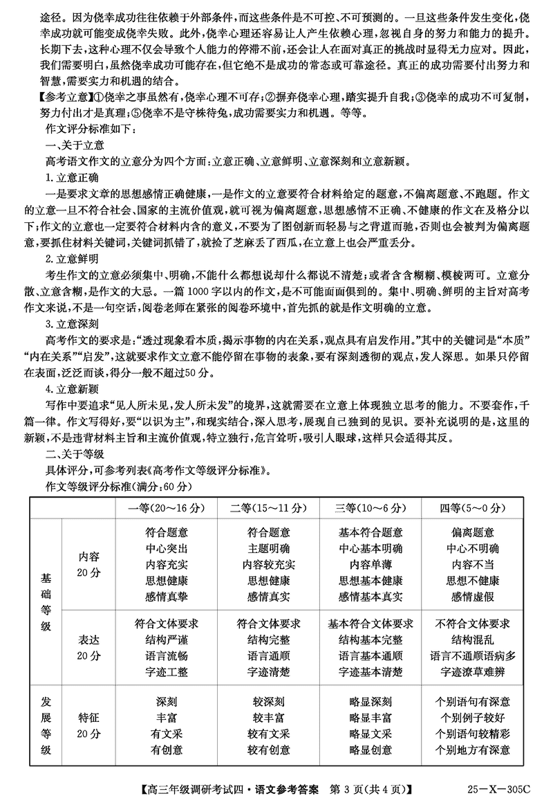 河南TOP20名校2025届高三上调研四语文试题及答案
