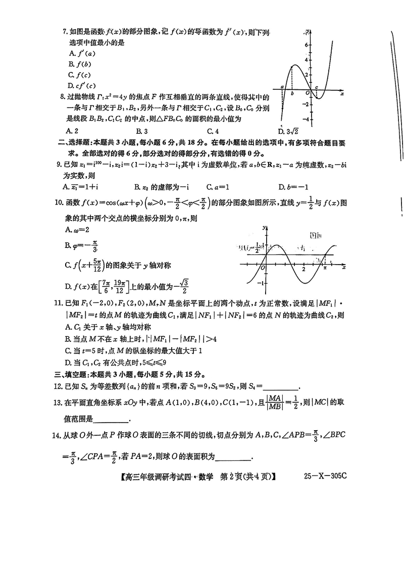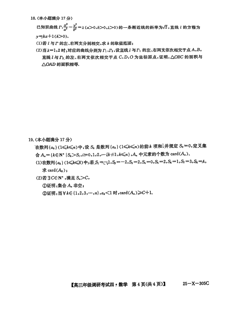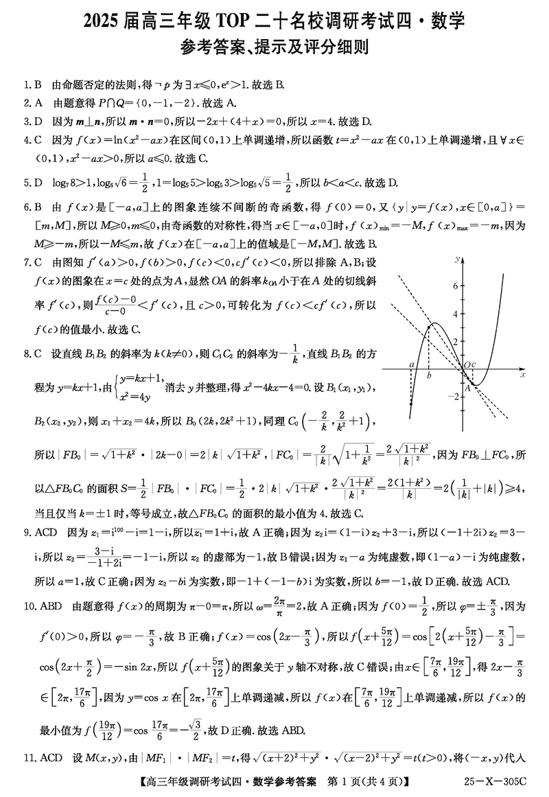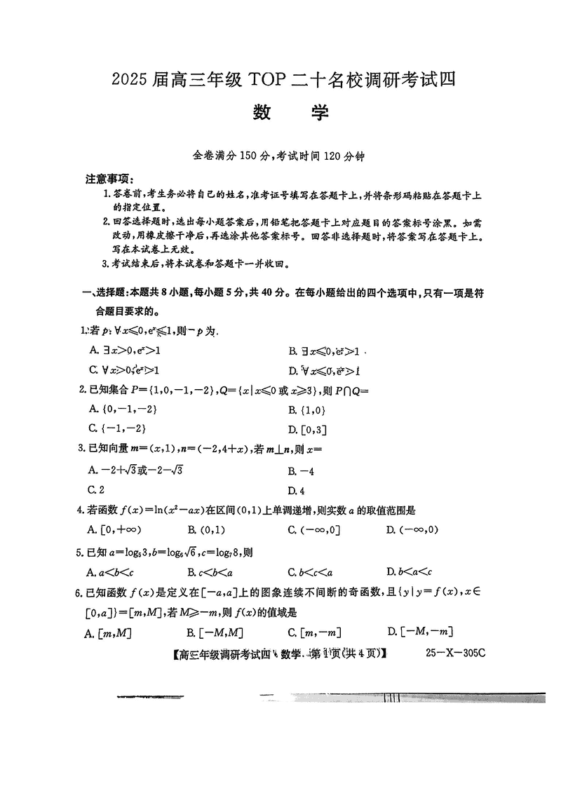 河南TOP20名校2025届高三上调研四数学试题及答案