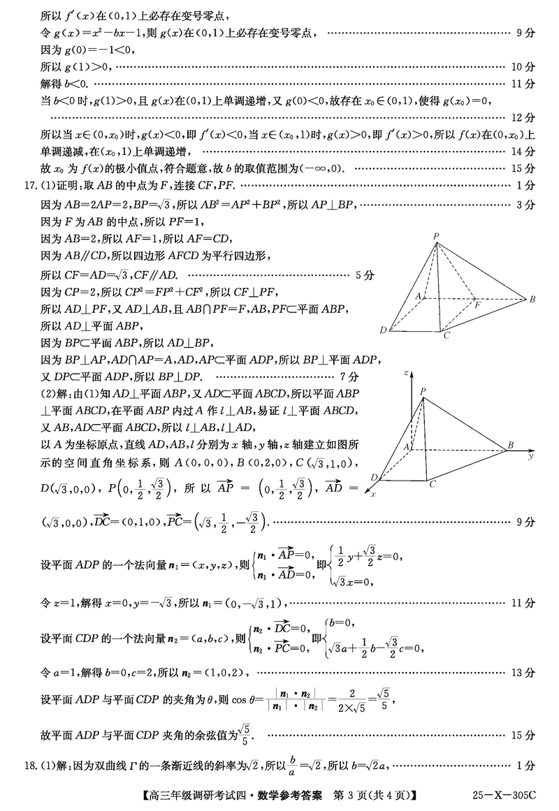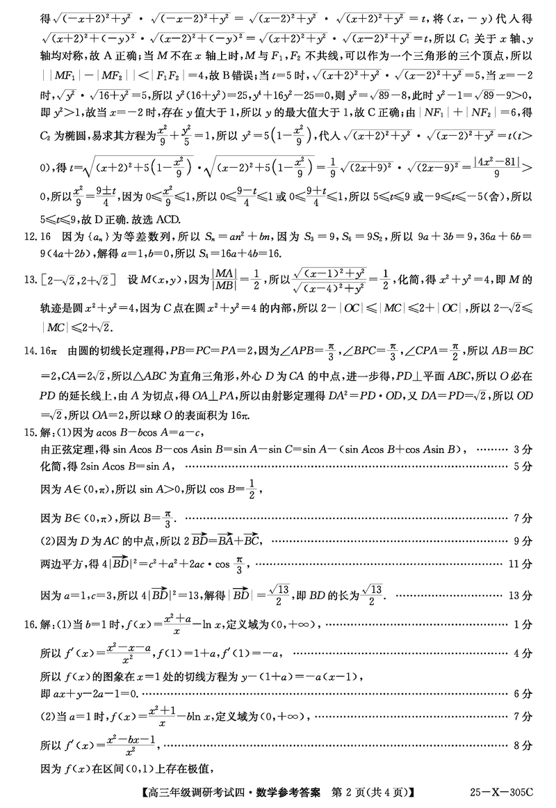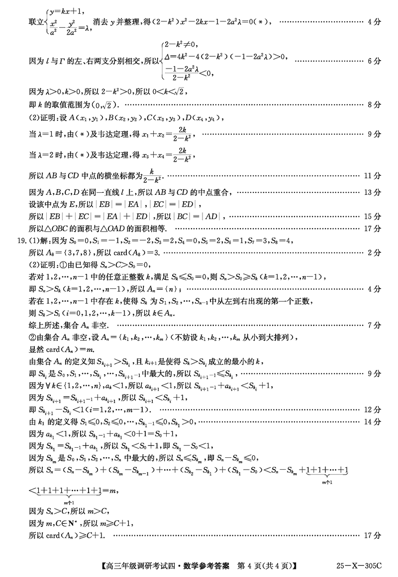 河南TOP20名校2025届高三上调研四数学试题及答案