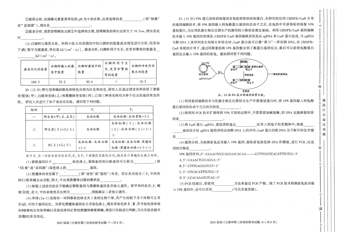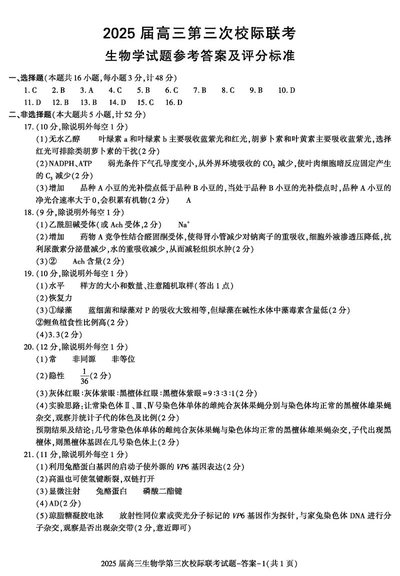 陕西汉中2025届高三上12月第三次校际联考生物考试已于近日开考,为方便考生考后及时查看考试情况,查漏补缺、弥补不足,本文整理了试题答案解析相关信息!