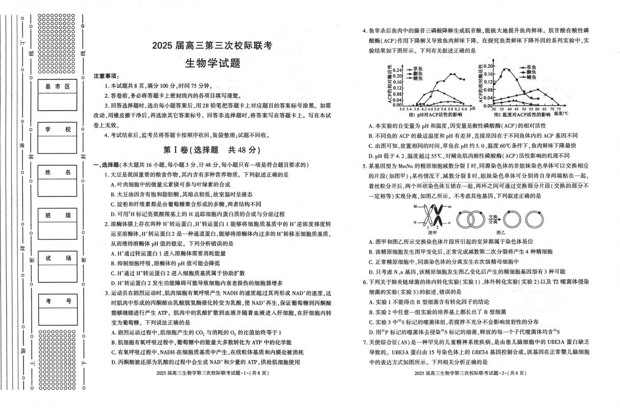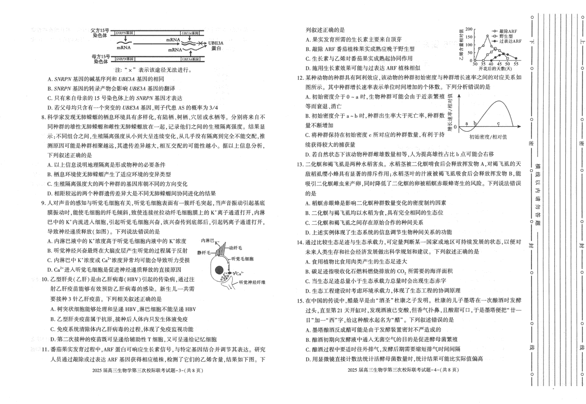 陕西汉中2025届高三上12月第三次校际联考生物试题及答案