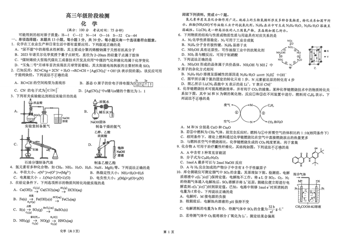 海安高级中学2024学年高三上12月阶段测化学试题及答案