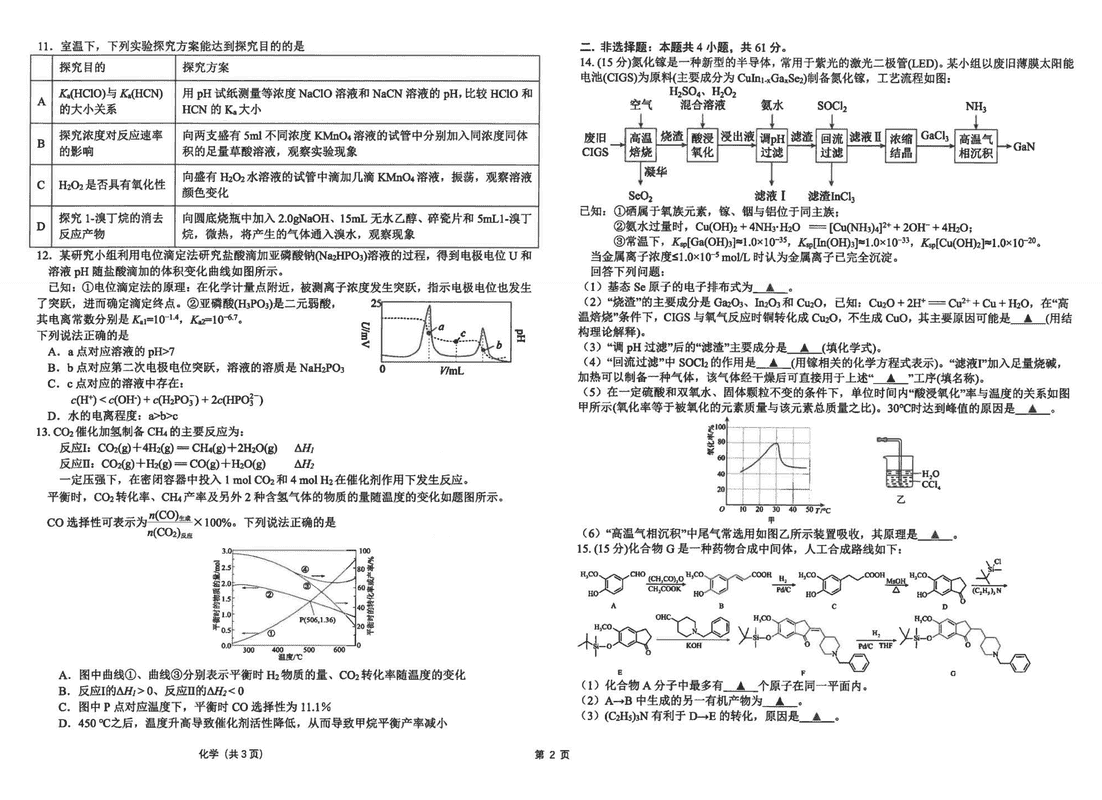 海安高级中学2024学年高三上12月阶段测化学考试已于近日开考,为方便考生考后及时查看考试情况,查漏补缺、弥补不足,本文整理了试题答案解析相关信息!