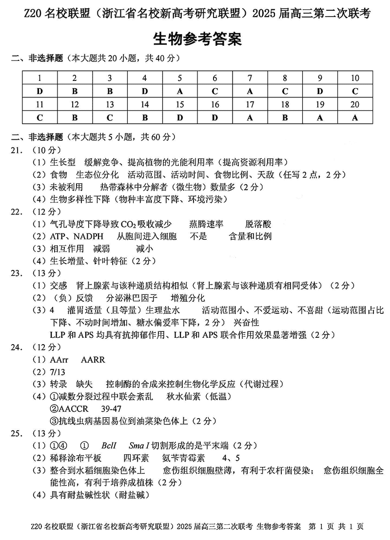 浙江Z20名校联盟2025届高三上学期第二次联考生物考试已于近日开考,为方便考生考后及时查看考试情况,查漏补缺、弥补不足,本文整理了试题答案解析相关信息!