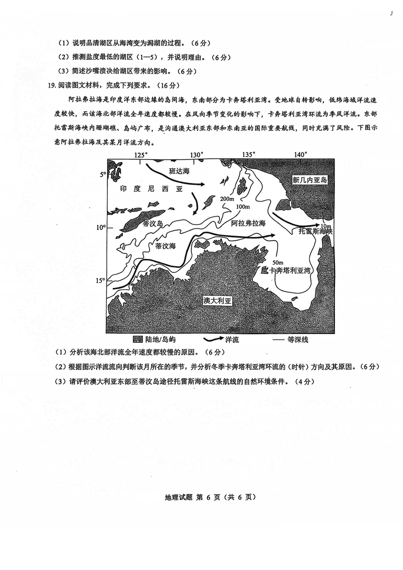 山西三重教育2025届高三12月适应性地理试题及答案