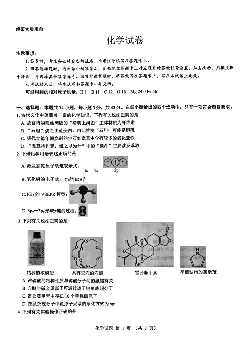 山西三重教育2025届高三12月适应性12月联考化学考试已于近日开考,为方便考生考后及时查看考试情况,查漏补缺、弥补不足,本文整理了试题答案解析相关信息!