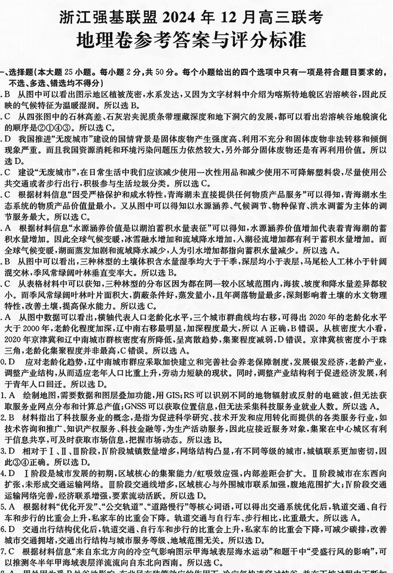 浙江省强基联盟2024年12月高三联考地理试题及答案 时间:2024-12-19 09:59 浙江 文综试题 浙江省强基联盟2024年12月高三联考地理考试已于近日开考,为方便考生考后及时查看考试情况,查漏补缺、弥补不足,本文整理了试题答案解析相关信息! 汇总:浙江省强基联盟2024年12月高三联考试题及答案汇总 地理试题及答案解析