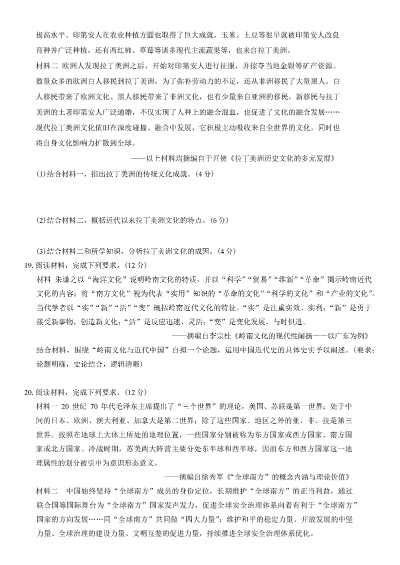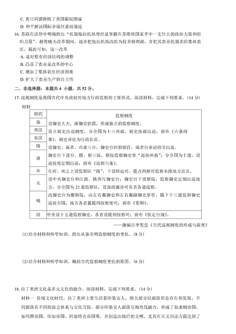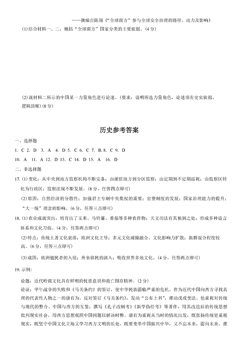 广东衡水金卷2025届高三上学期12月联考历史试题及答案