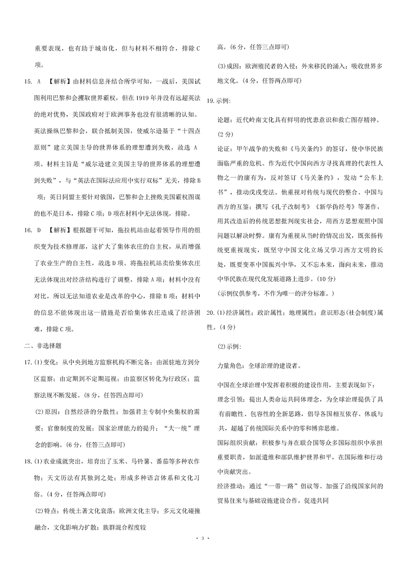 历史试题及答案解析