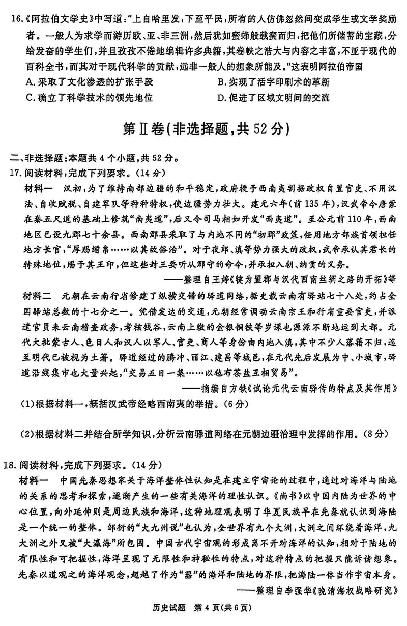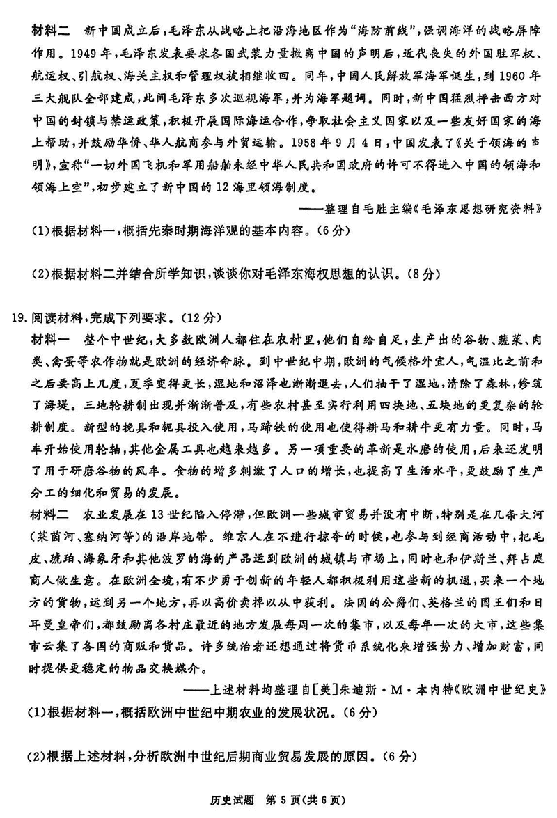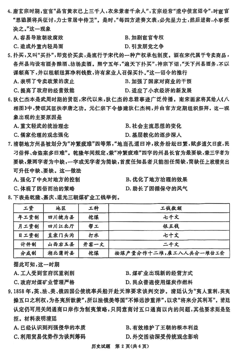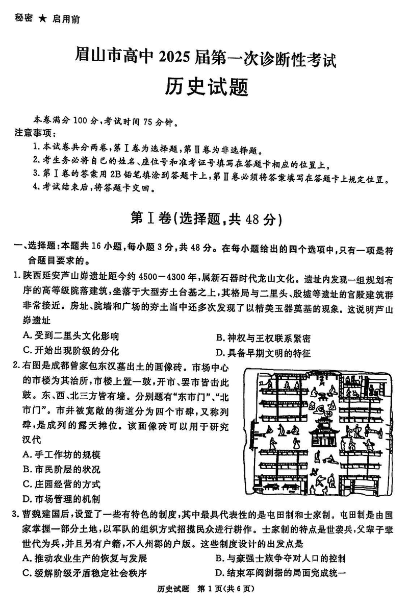 四川九市一诊2025届高三12月第一次诊断历史试题及答案