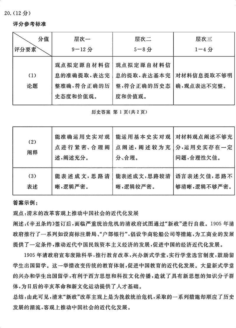 历史试题及答案解析
