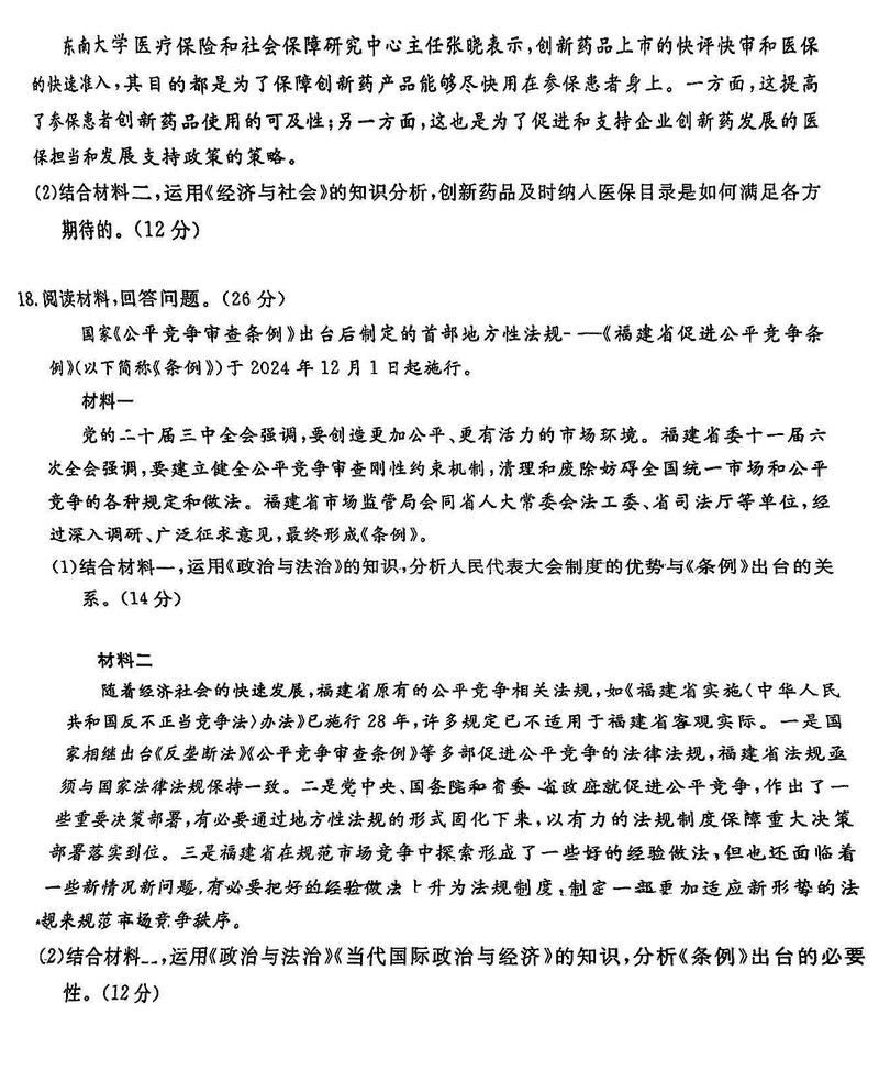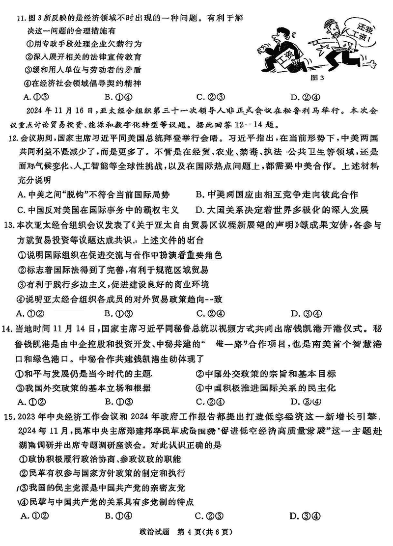 四川九市一诊2025届高三12月第一次诊断政治试题及答案