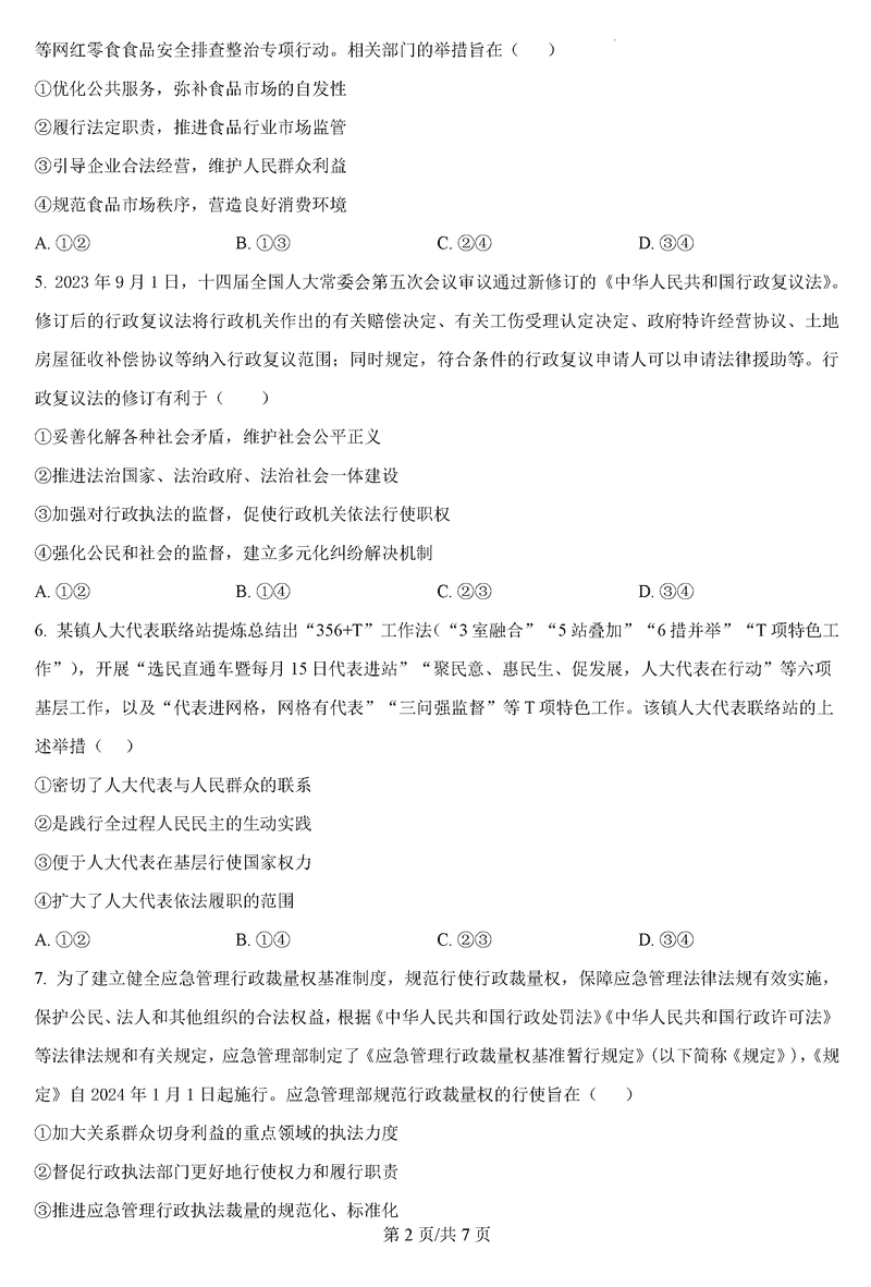 东莞七校联考2025届高三上学期12月月考政治试题及答案