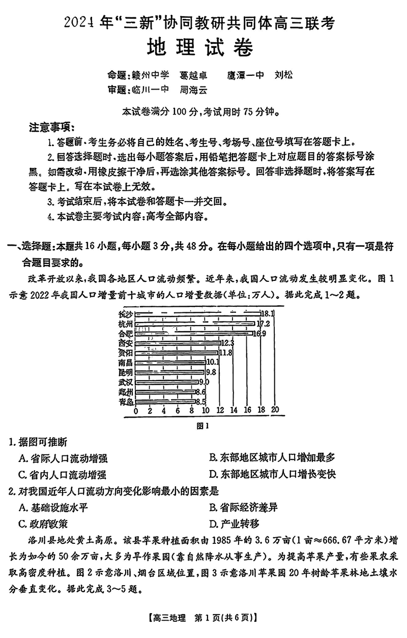 2024年江西三新协同教研共同体高三12月联考地理考试已于近日开考,为方便考生考后及时查看考试情况,查漏补缺、弥补不足,本文整理了试题答案解析相关信息!