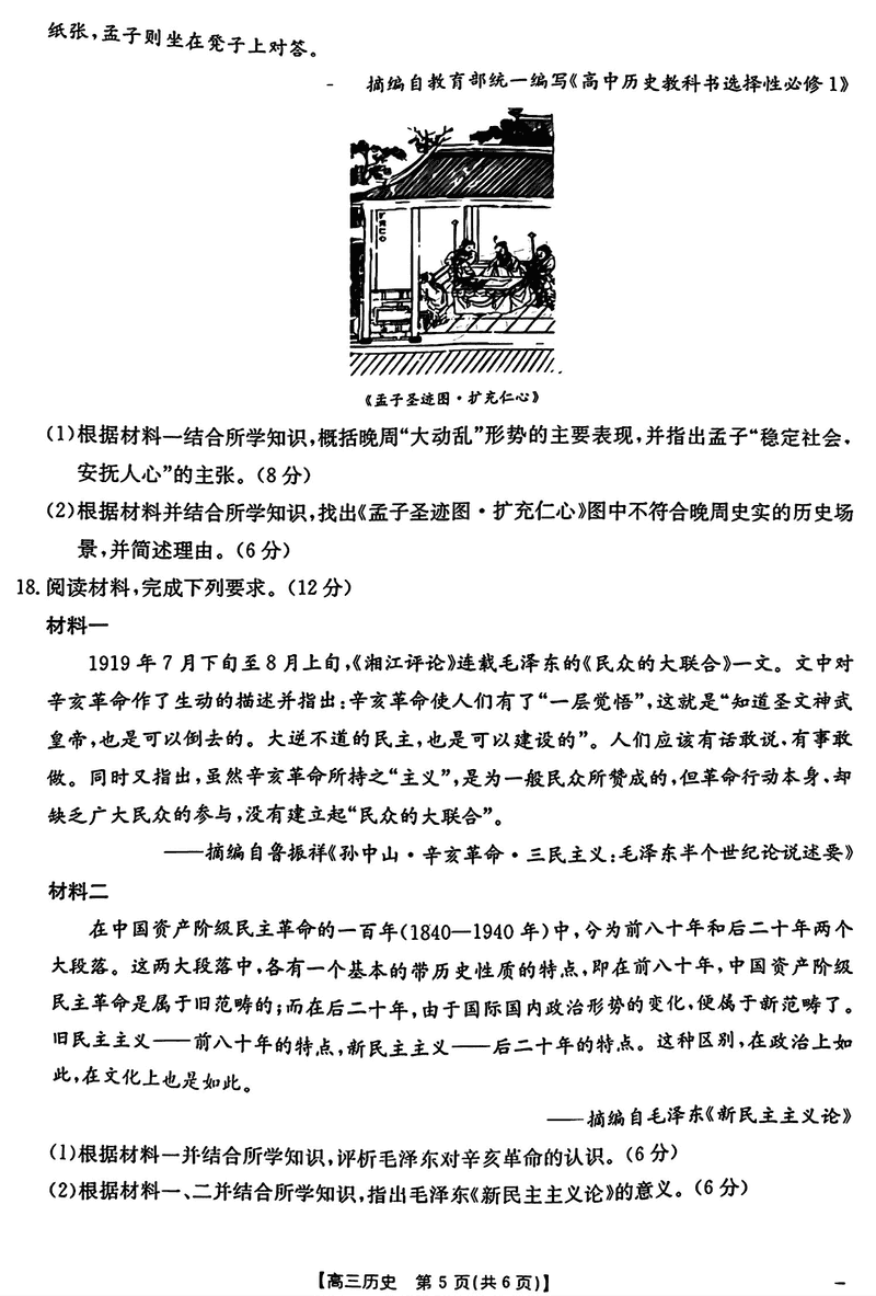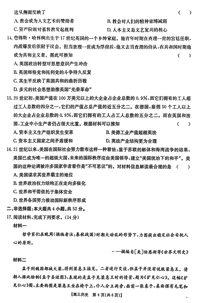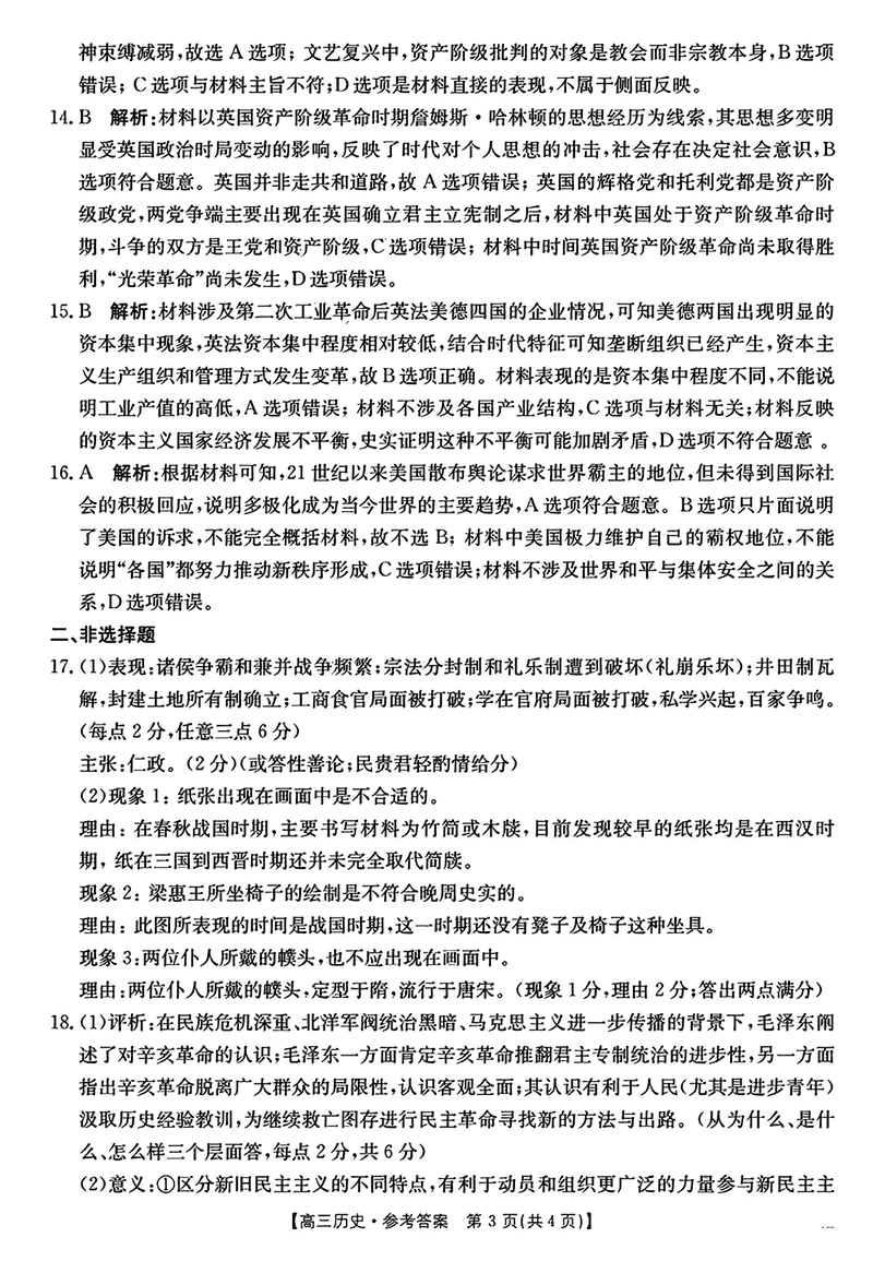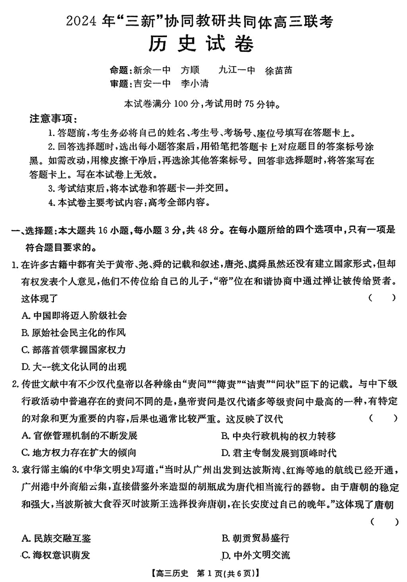 2024年江西三新协同教研共同体高三12月联考历史试题及答案