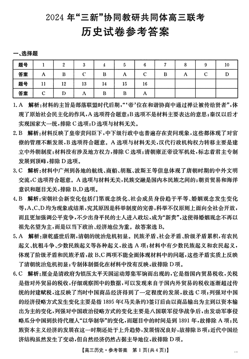 2024年江西三新协同教研共同体高三12月联考历史考试已于近日开考,为方便考生考后及时查看考试情况,查漏补缺、弥补不足,本文整理了试题答案解析相关信息!