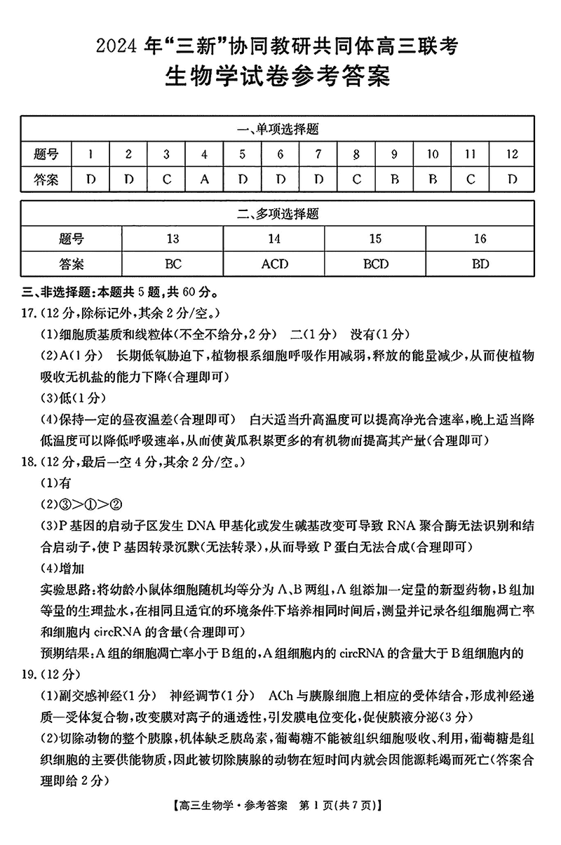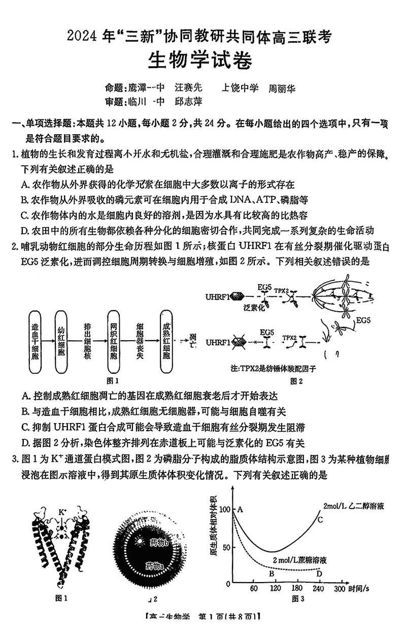 2024年江西三新协同教研共同体高三12月联考生物考试已于近日开考,为方便考生考后及时查看考试情况,查漏补缺、弥补不足,本文整理了试题答案解析相关信息!