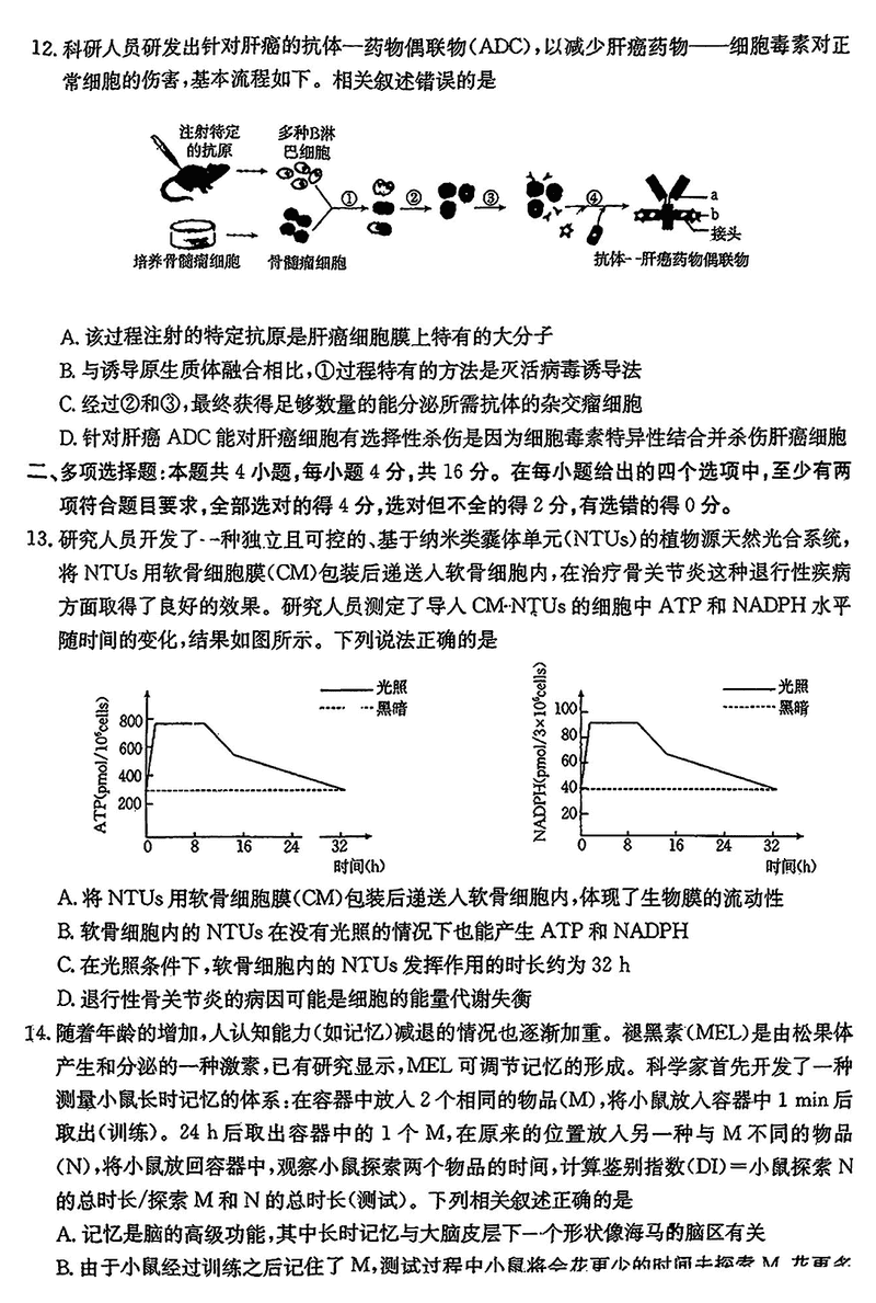 2024年江西三新协同教研共同体高三12月联考生物试题及答案